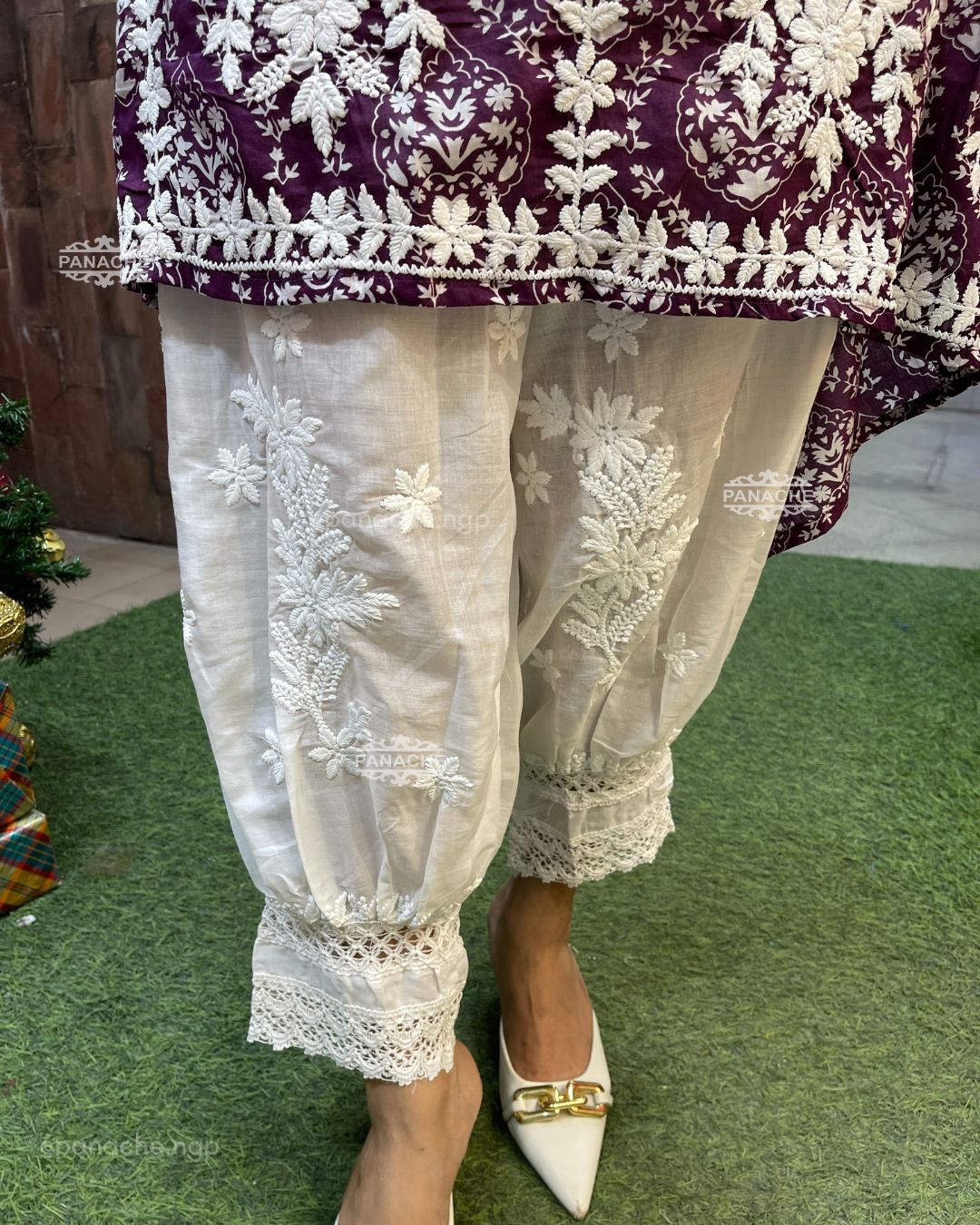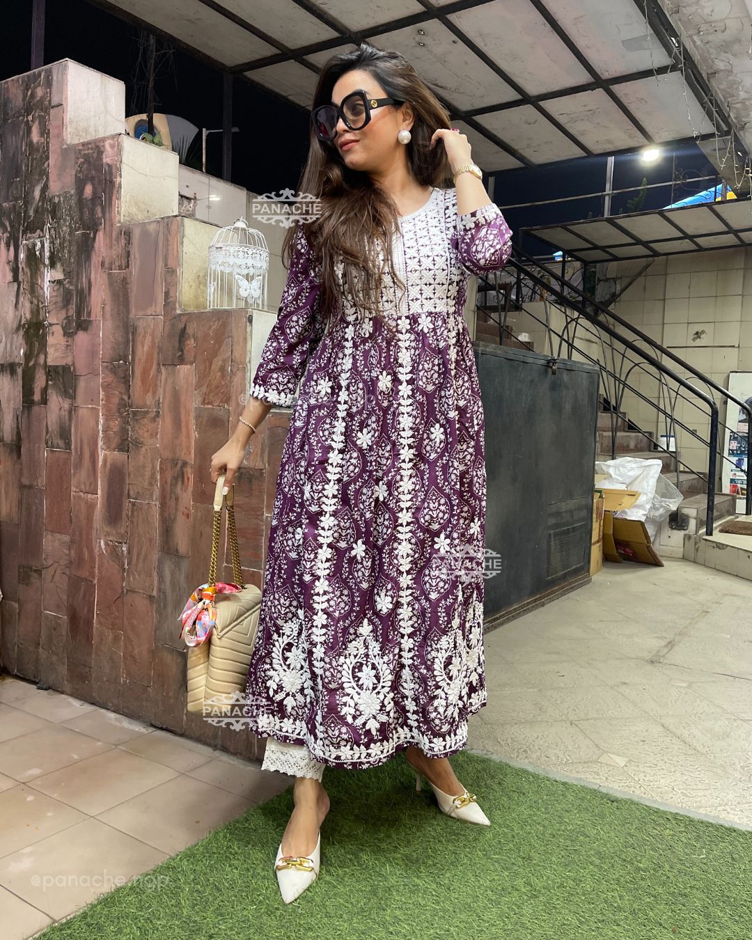 🟣 Resham Handwork and dabka on kurta kalis and motives , same on sleeves, heavy work on Afghani pants too