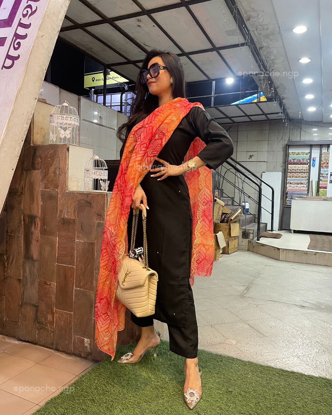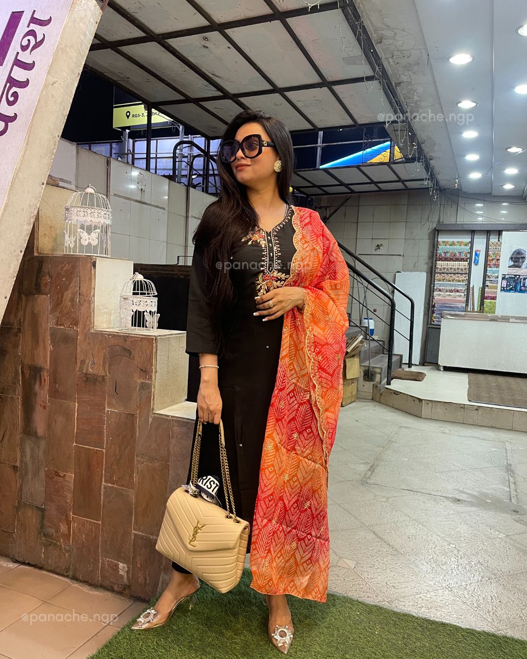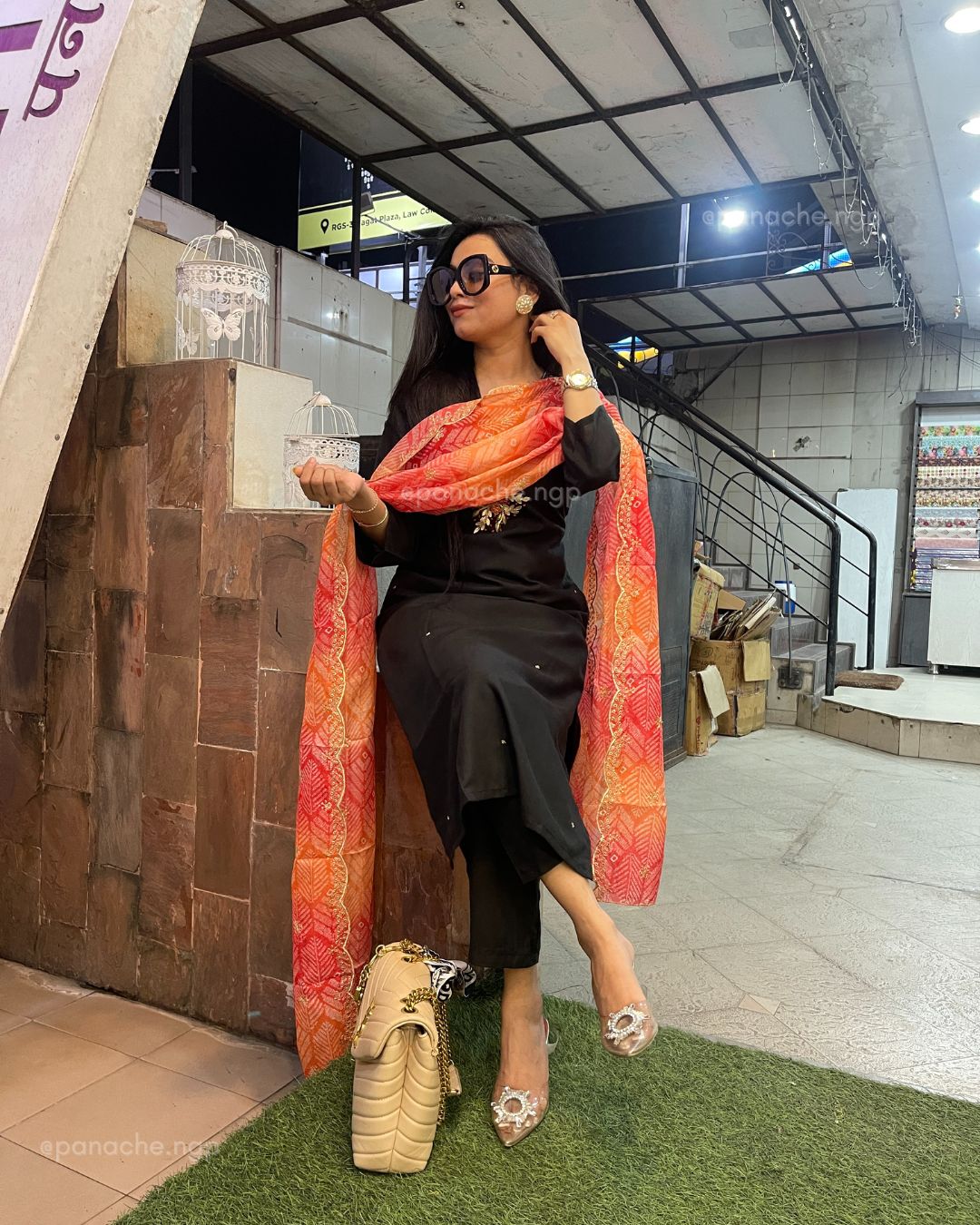🟣 Beautiful bandhani Orgenza scalloped dupatta with handwork on kurta and small buttas all over