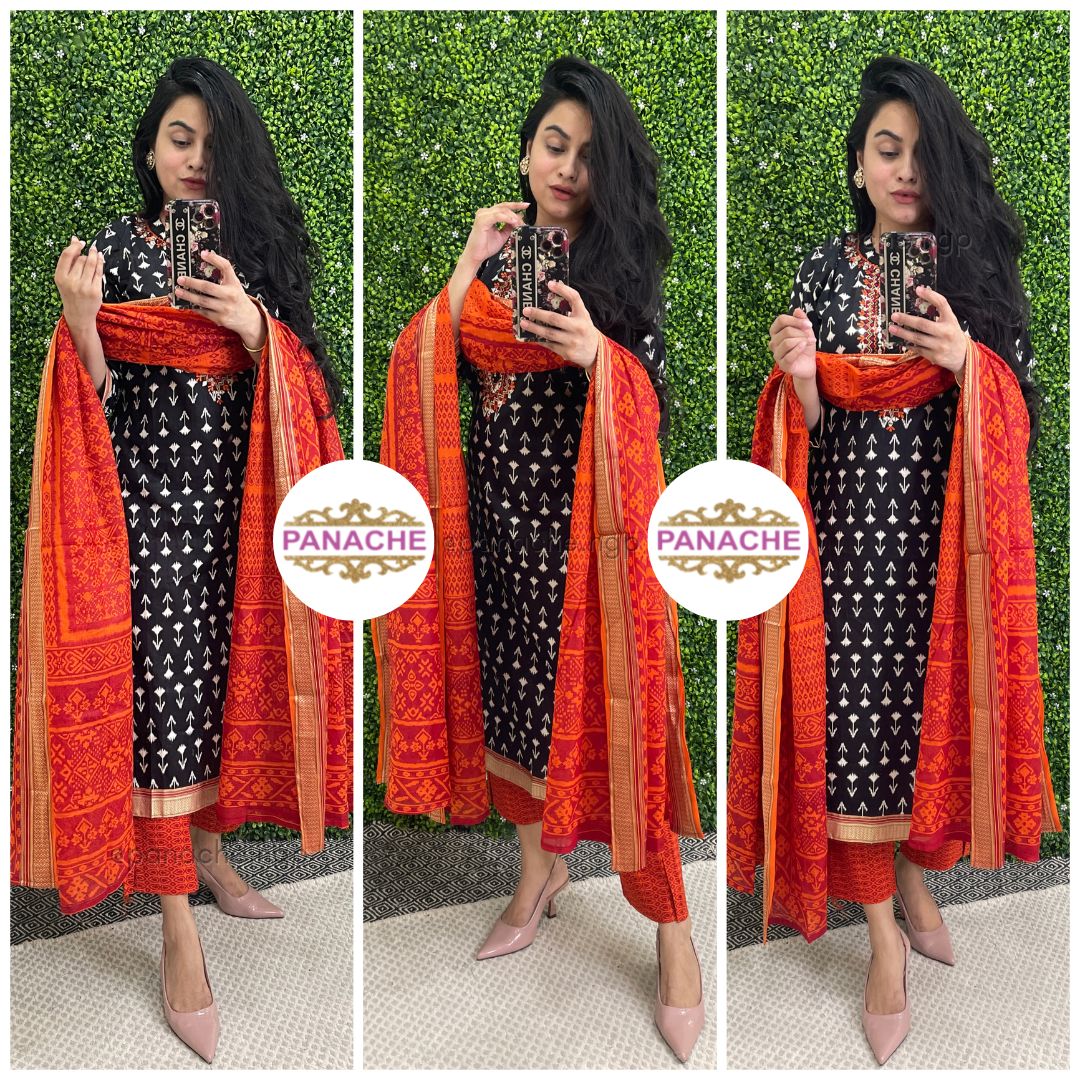 🟣 Our all new cotton black suit with contrast dupatta and pants is a must buy for daily / office wear