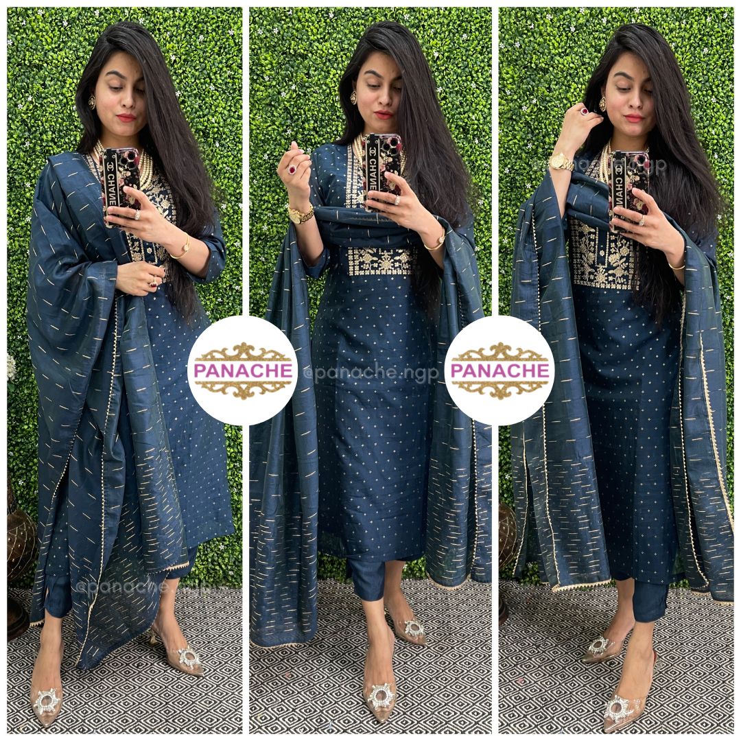 🟣 Machine embroidery in kurta with Banarasi brocade all over kurta & dupatta