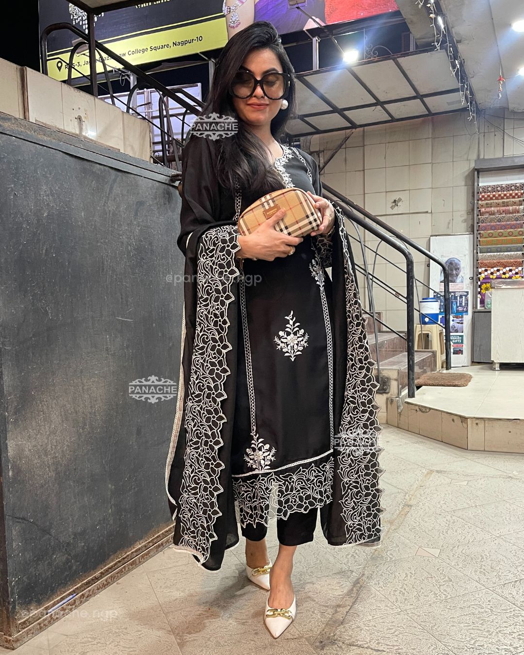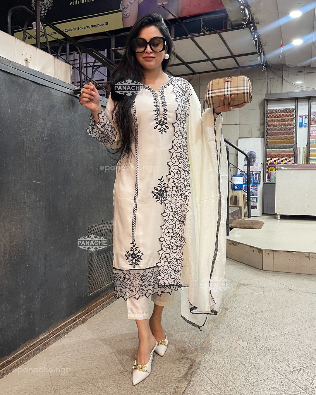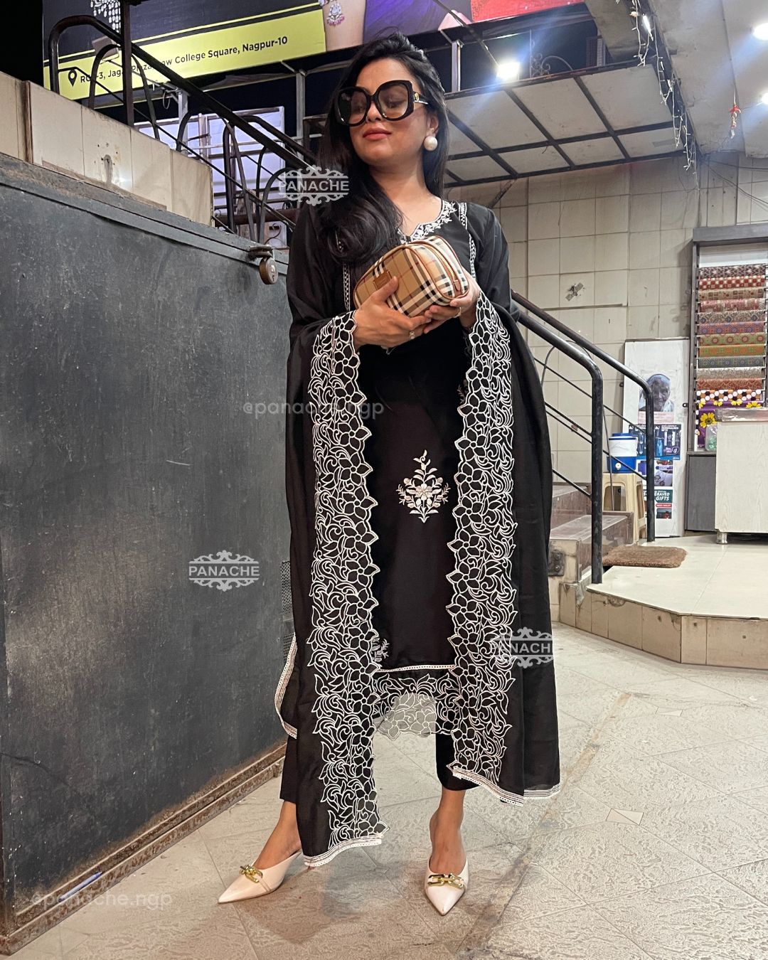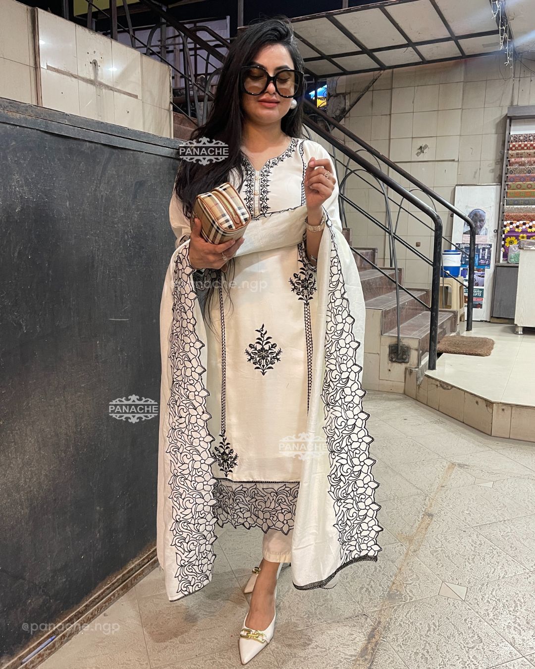 🟣 Embroidery on neckline, sleeves buttas on kurta and on sleeves