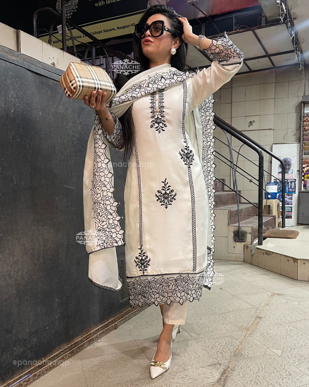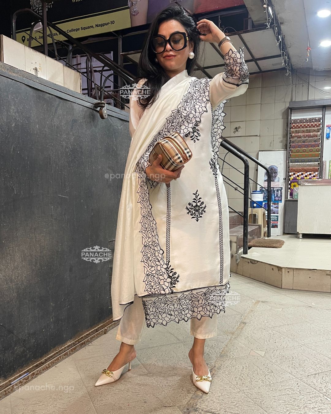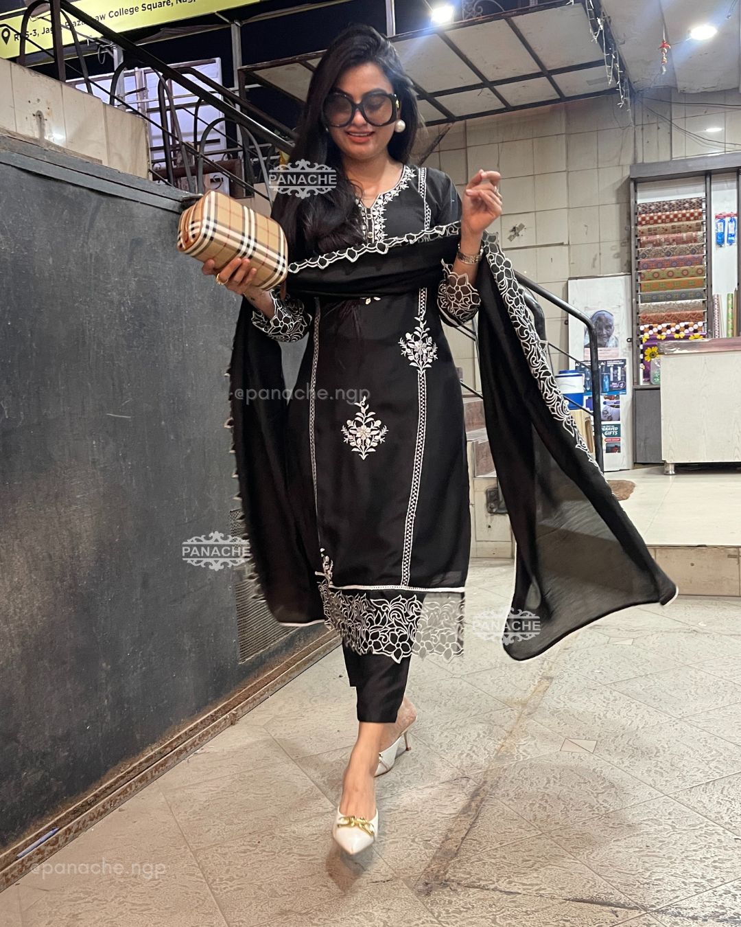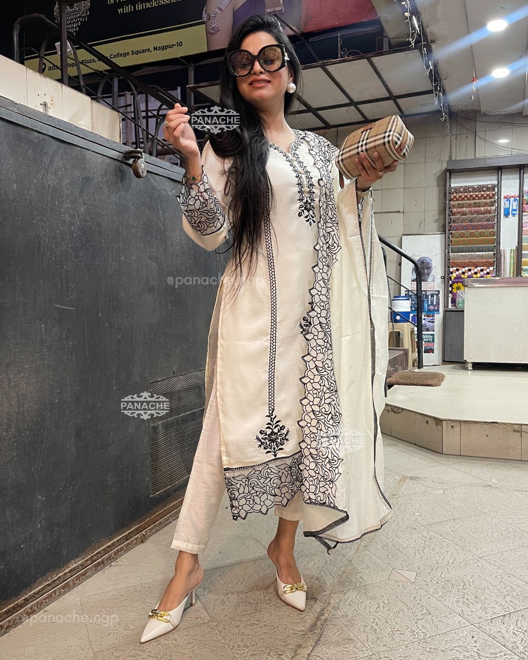 🟣 Embroidery on neckline, sleeves buttas on kurta and on sleeves