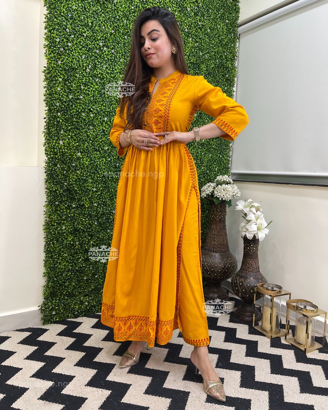 🟣 A stand collar smart Nyra for Semiformal wear , side slits with print from too and smart pants to team up with