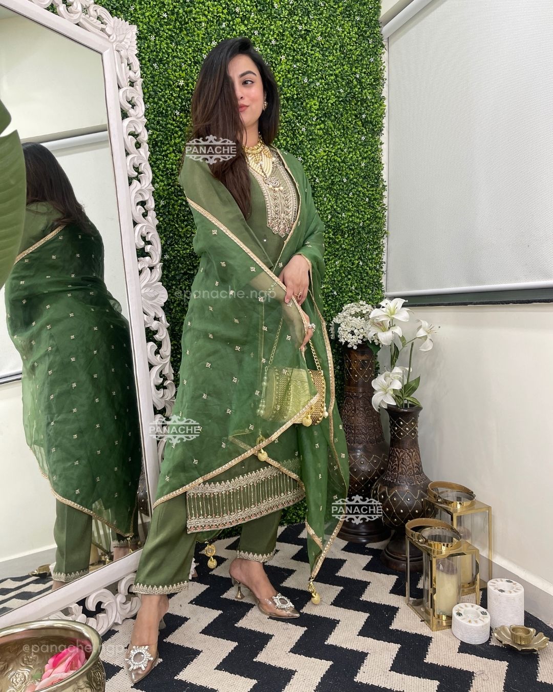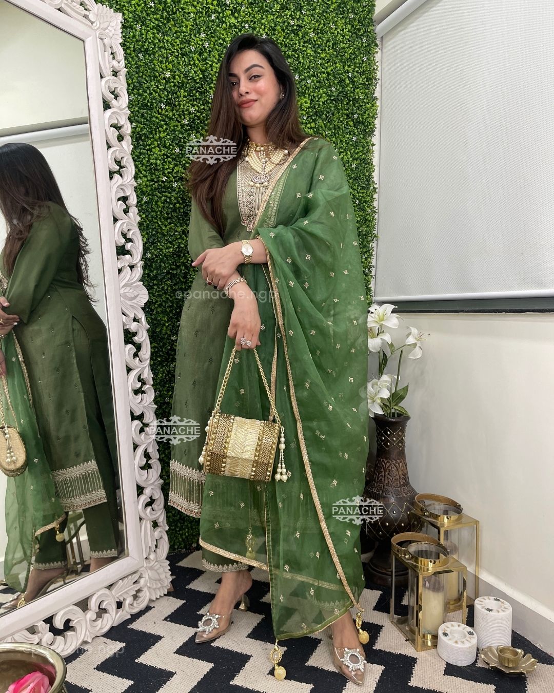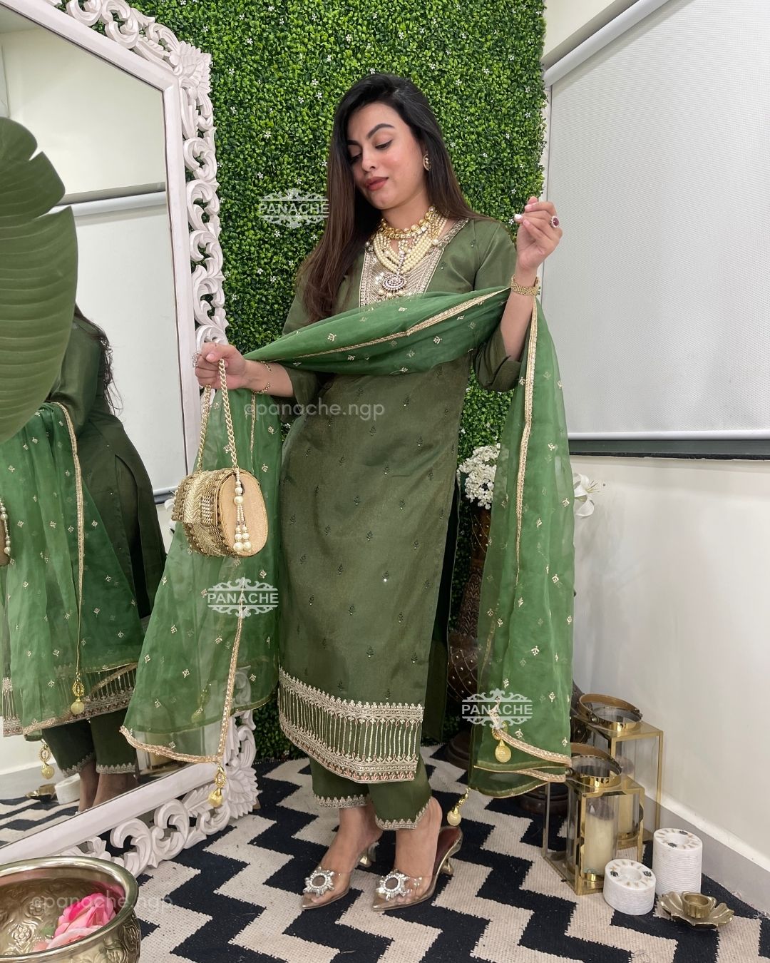 🟣 A lovely fabric and well placed embroidery with heavy daman and a detailed dupatta with buttas and tassels