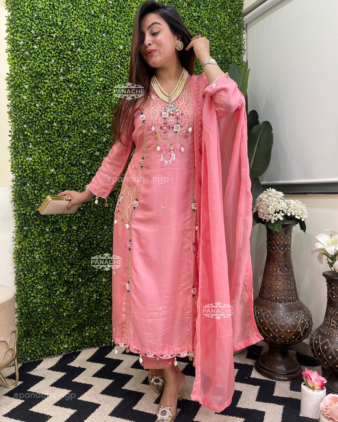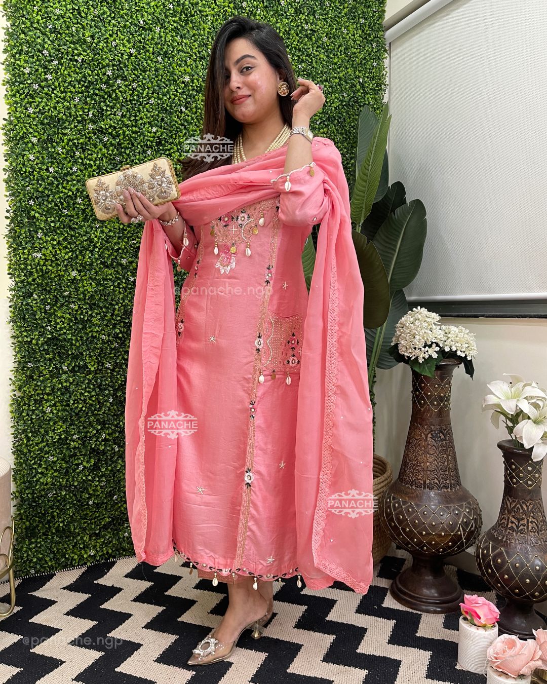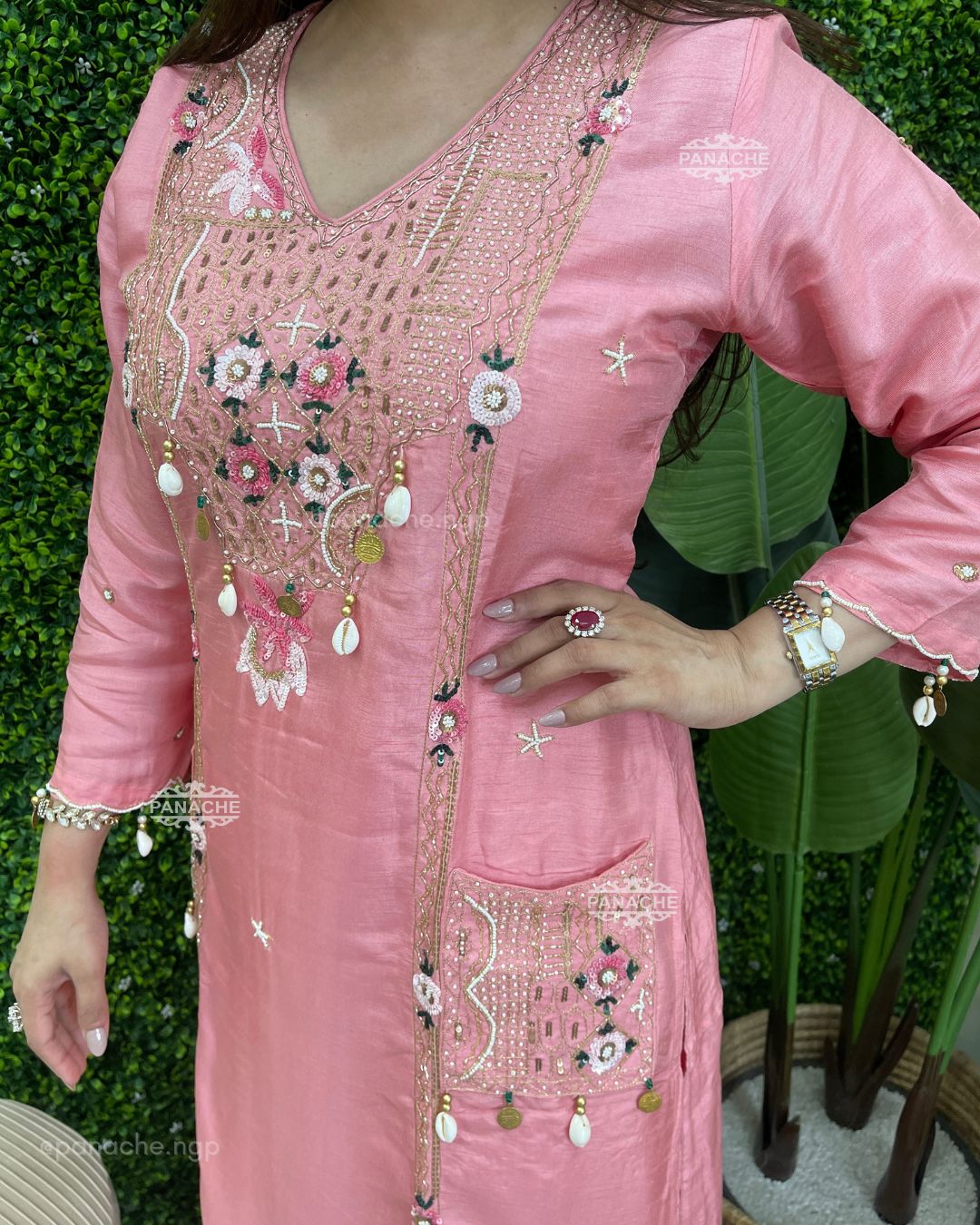 🟣 Shells coins zardoz frenchknot sequin and so much more in this set! Also a lovely Orgenza dupatta with Sitaras, side pockets on kurta