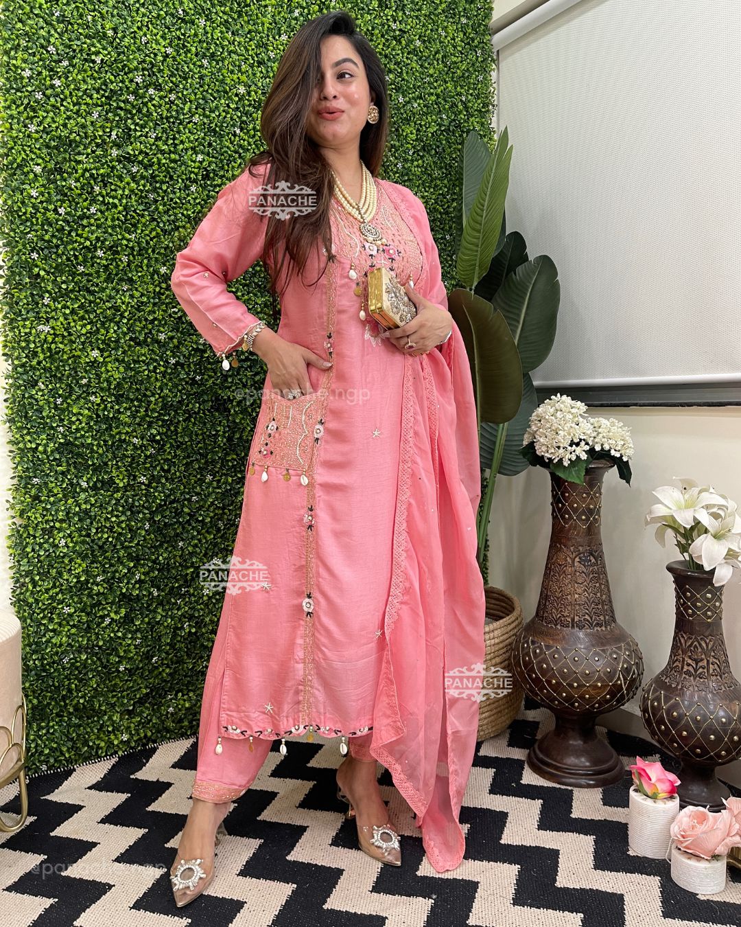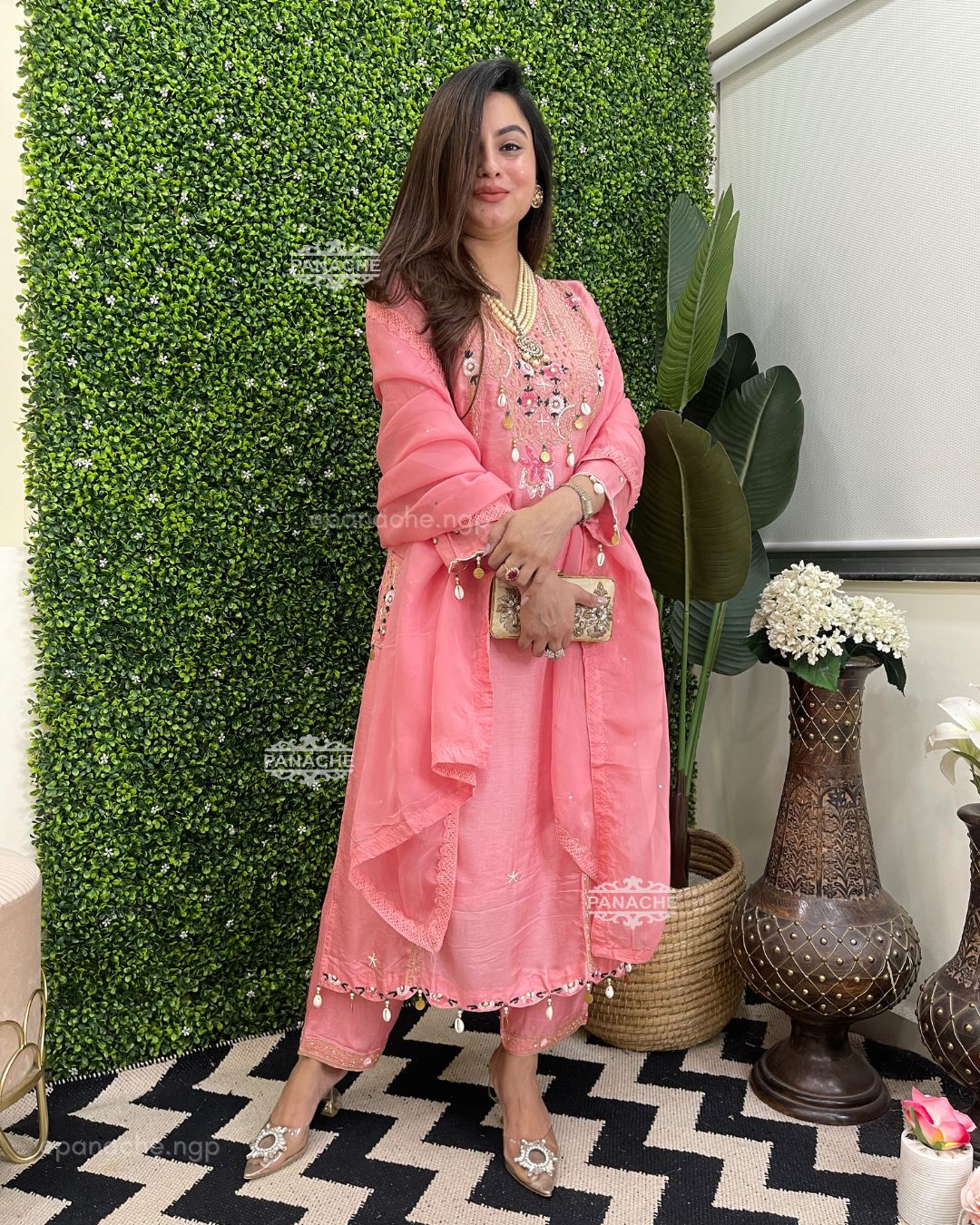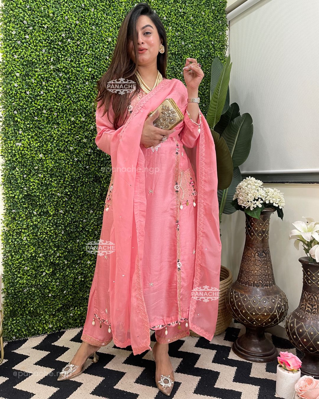 🟣 Shells coins zardoz frenchknot sequin and so much more in this set! Also a lovely Orgenza dupatta with Sitaras, side pockets on kurta