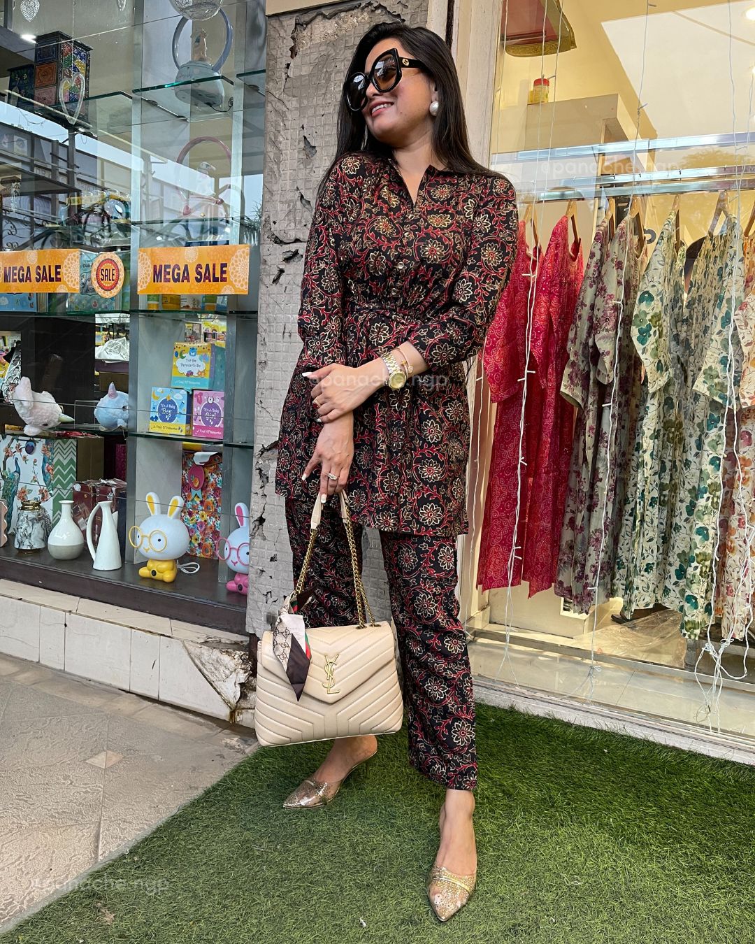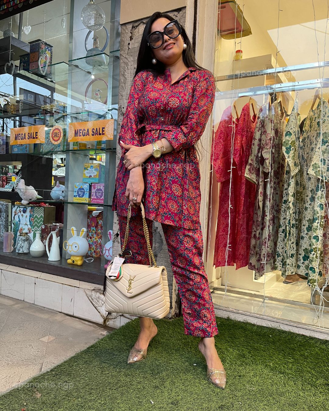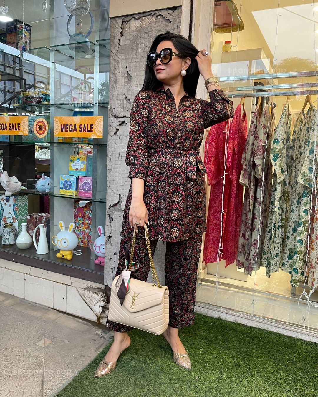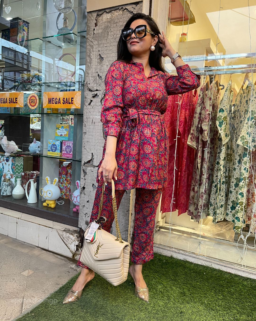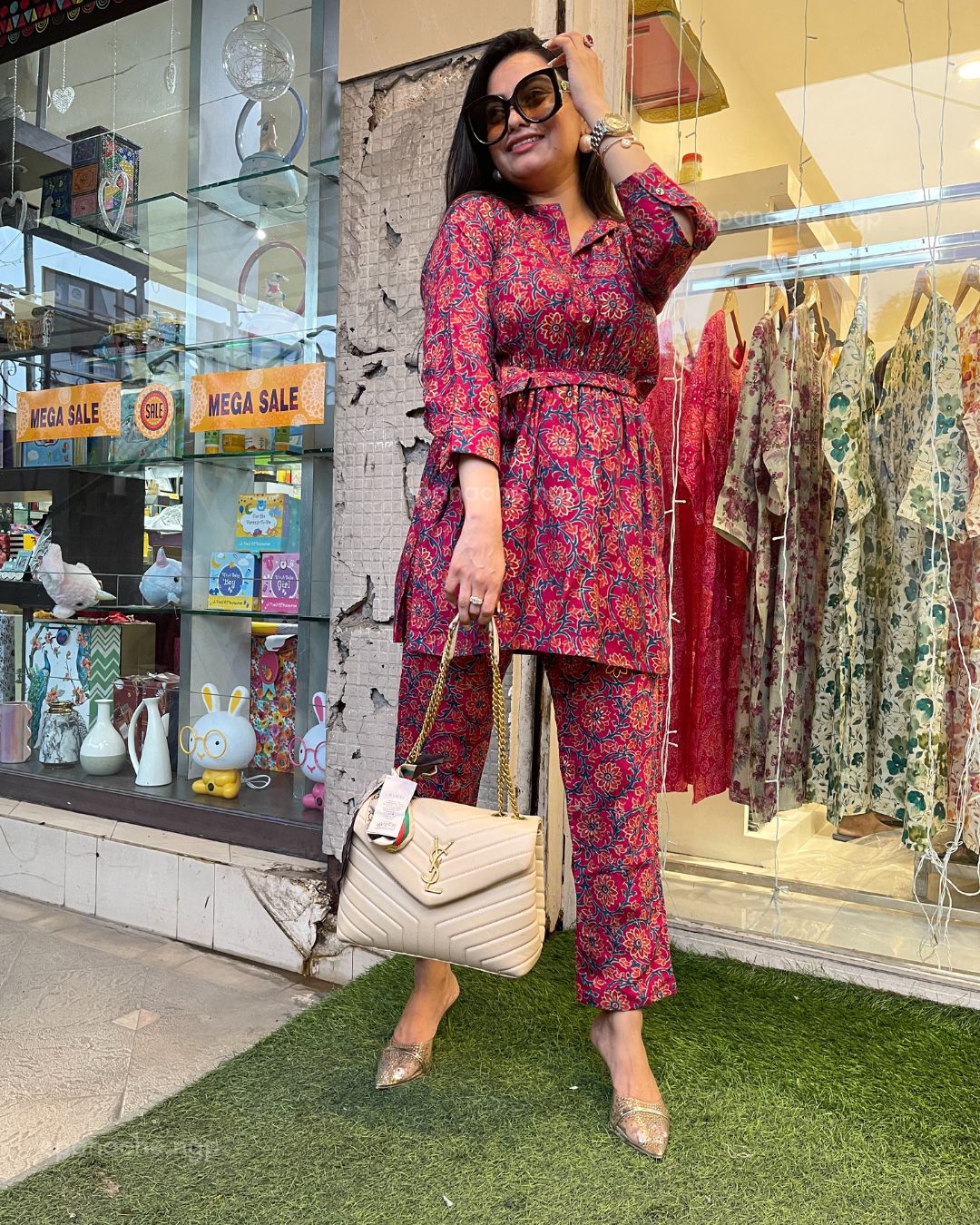 🟣 Lovely peplum muslin Cords with belt and straight pants