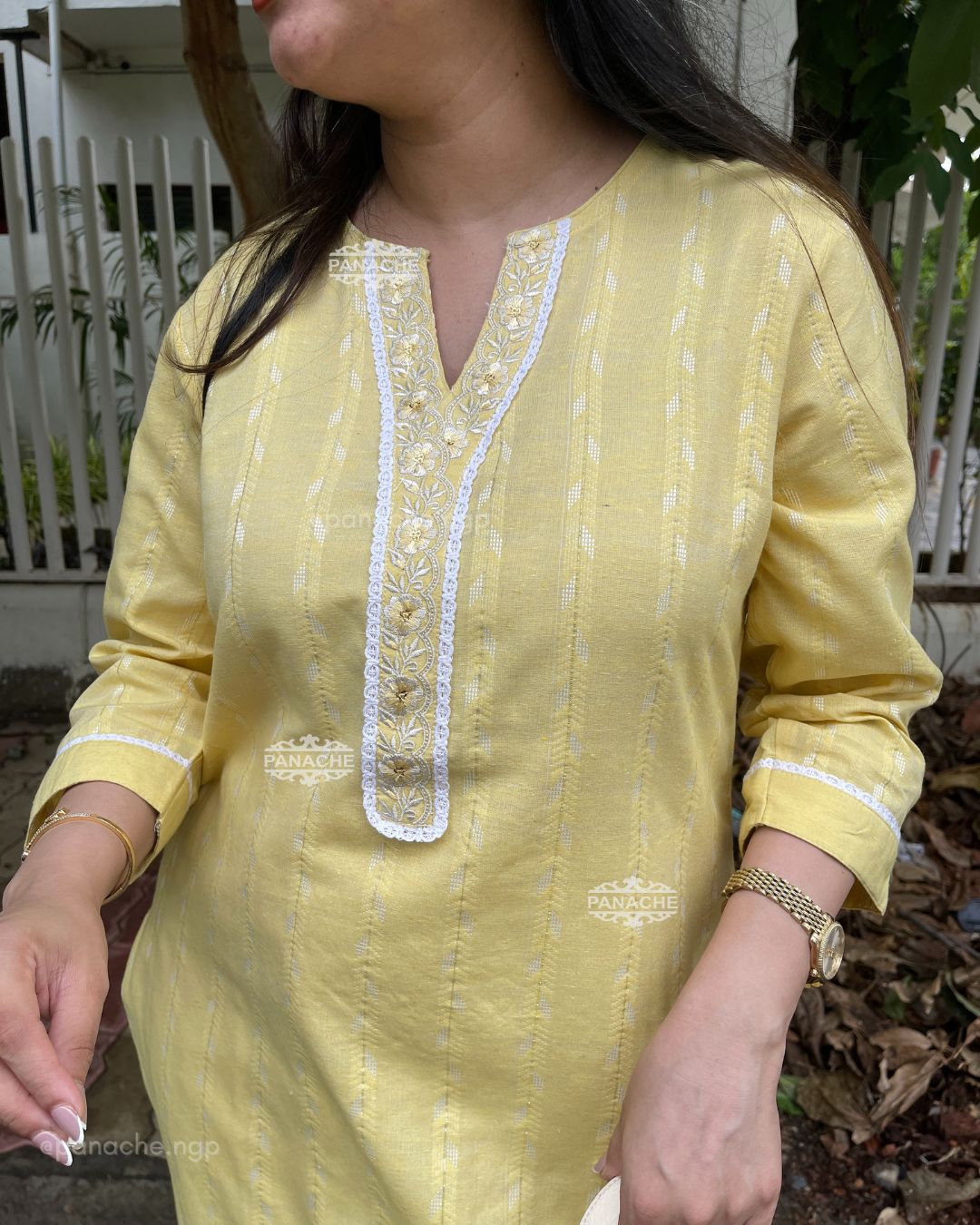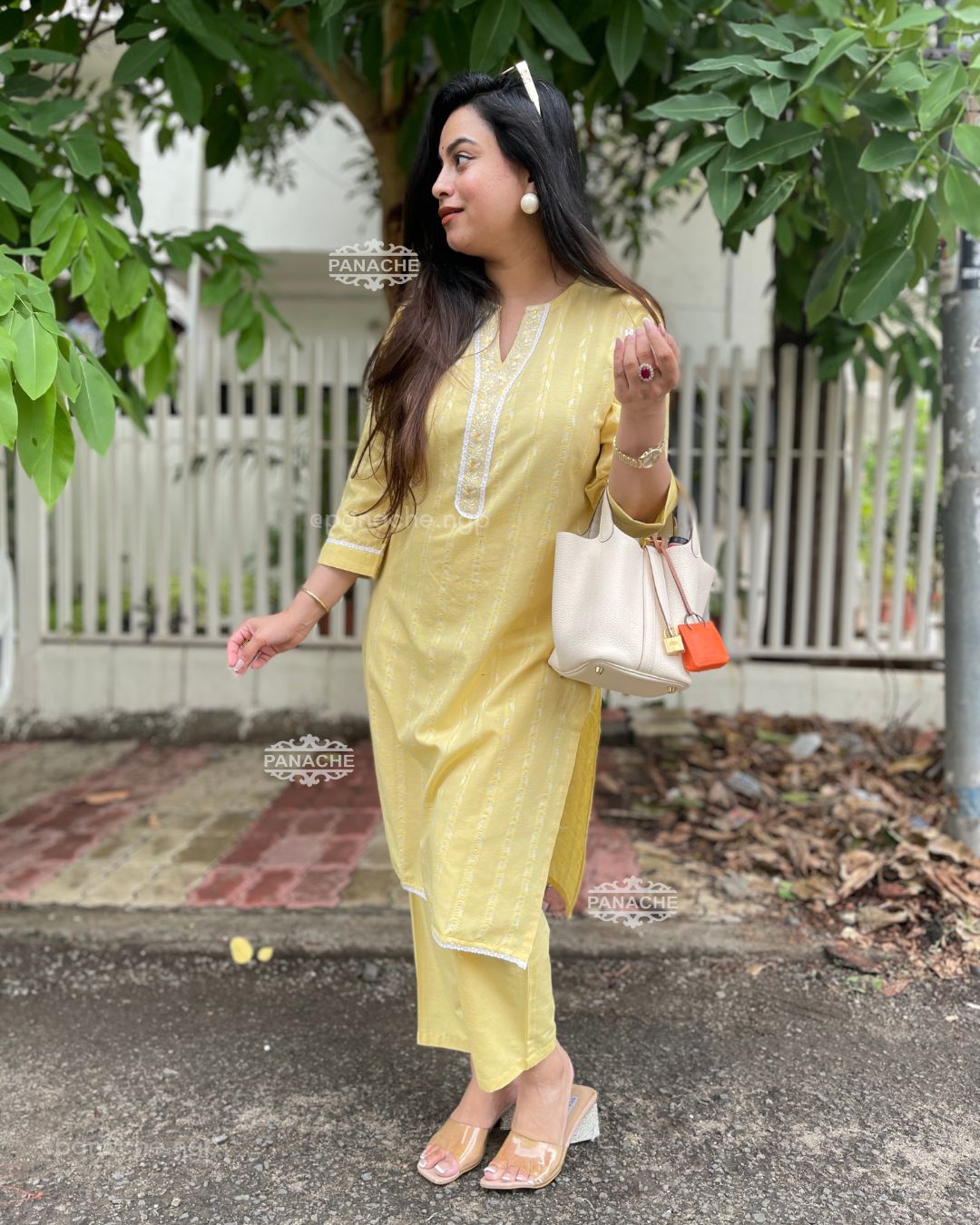 🟣 Crosia neckline with self ikkat fabric & pocket in pants