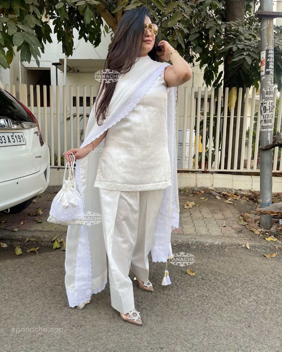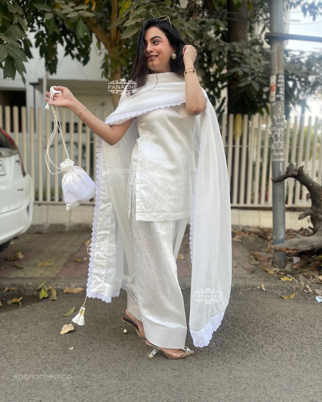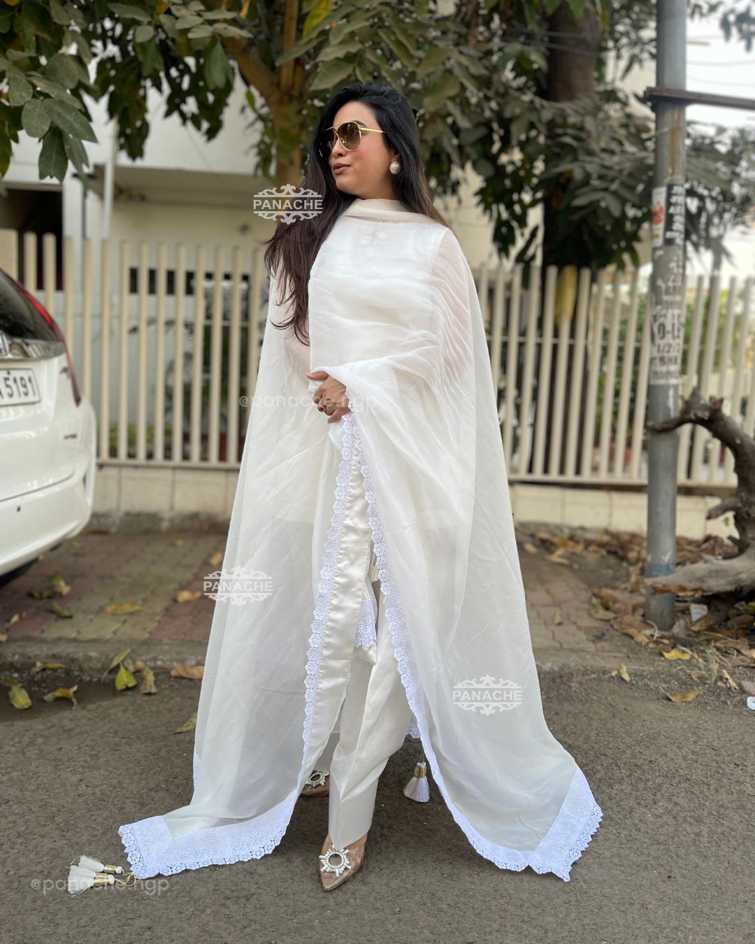🟣 One of a kind Pret wear in swan white with karachi touch, getting back the nostalgia of salwars kurta with the longest ever dupattas