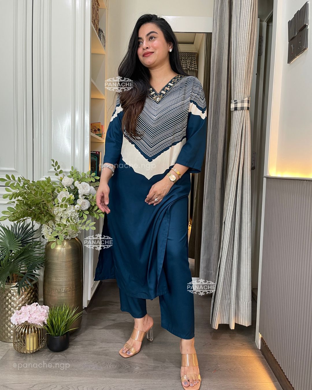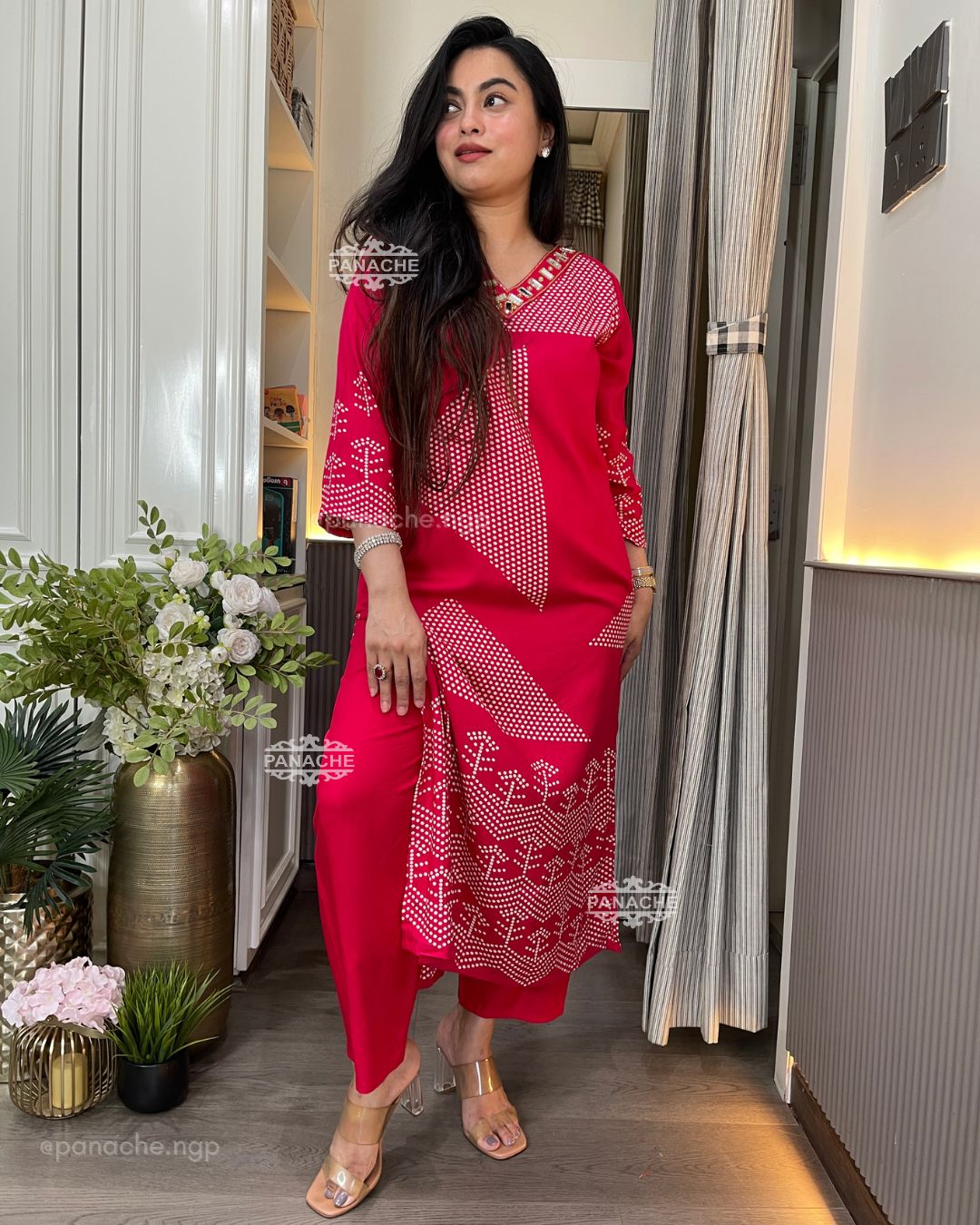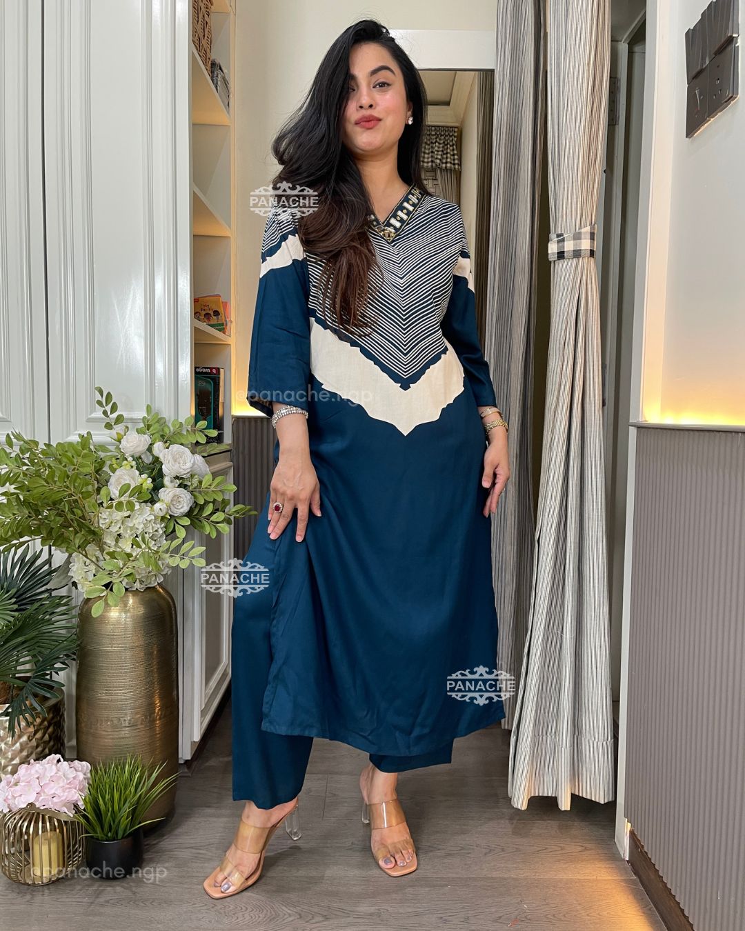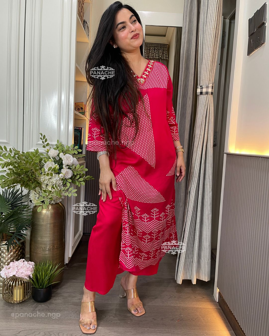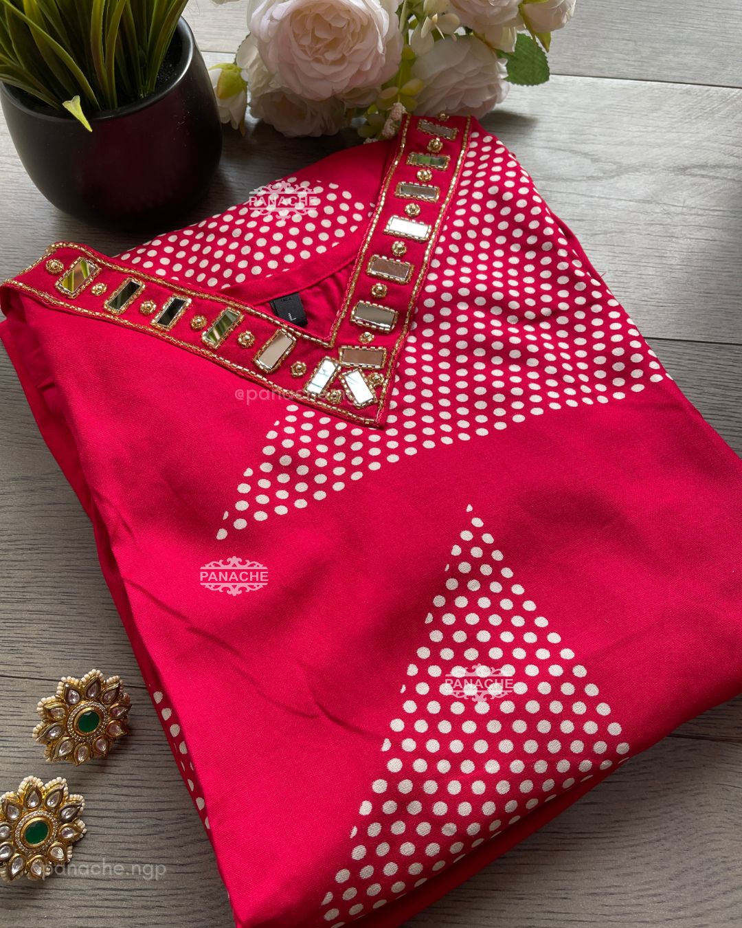 🟣 Mirror work and cut pipe neckline with print all over making sure comfort & style is priority