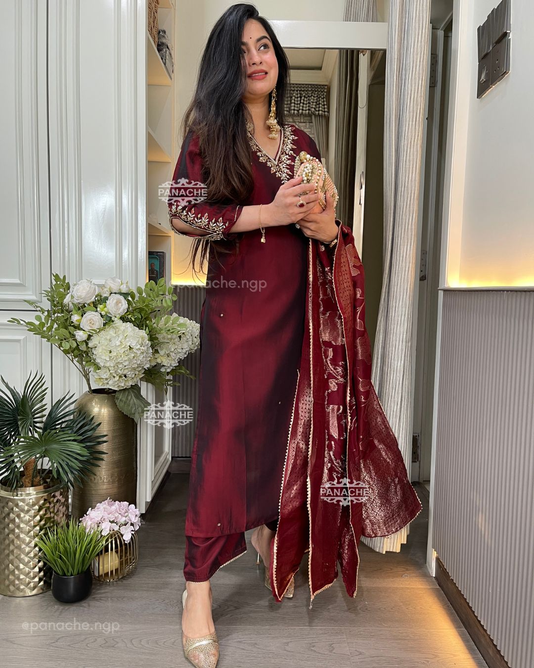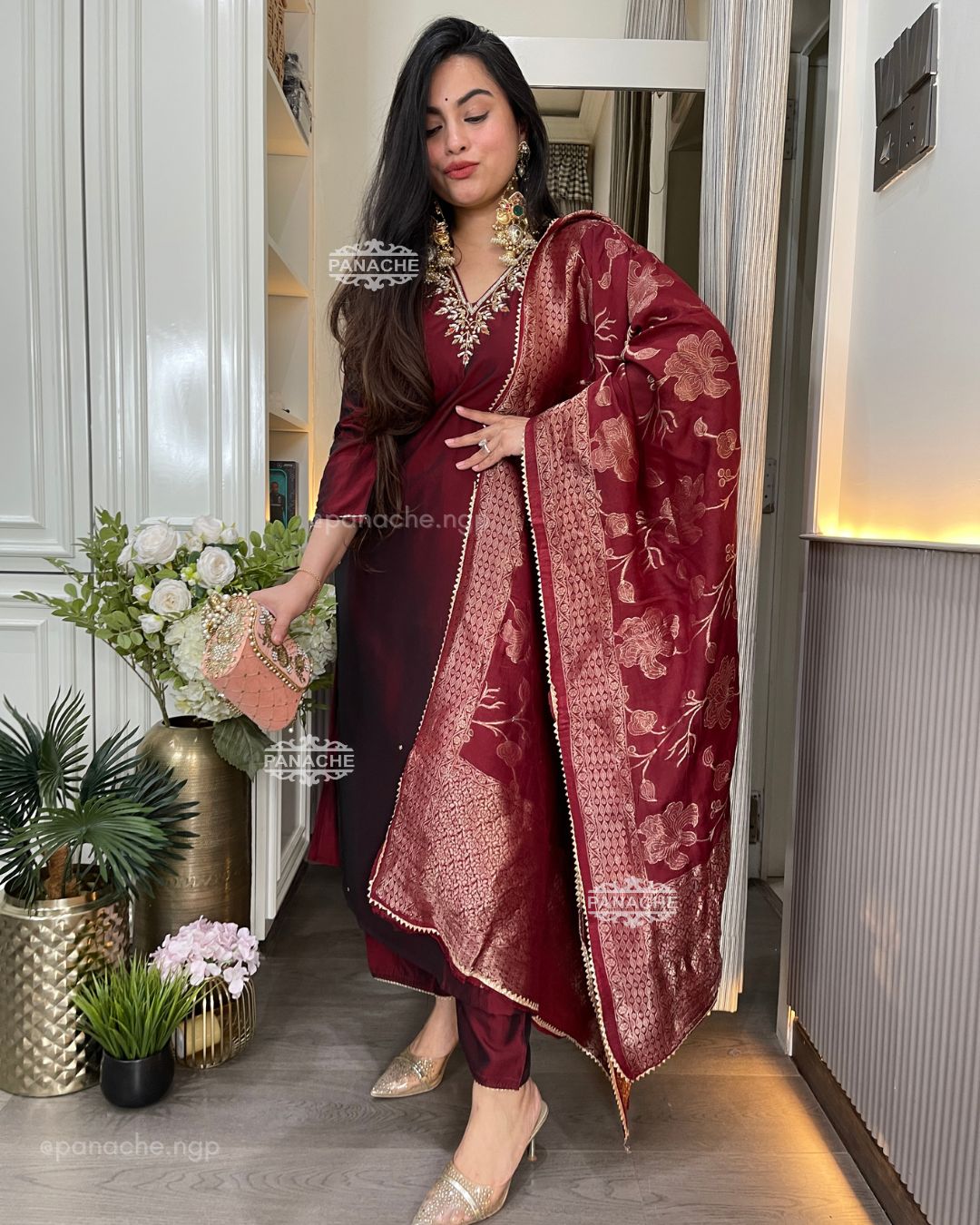 🛍️ Deep maroon Banarasi set
