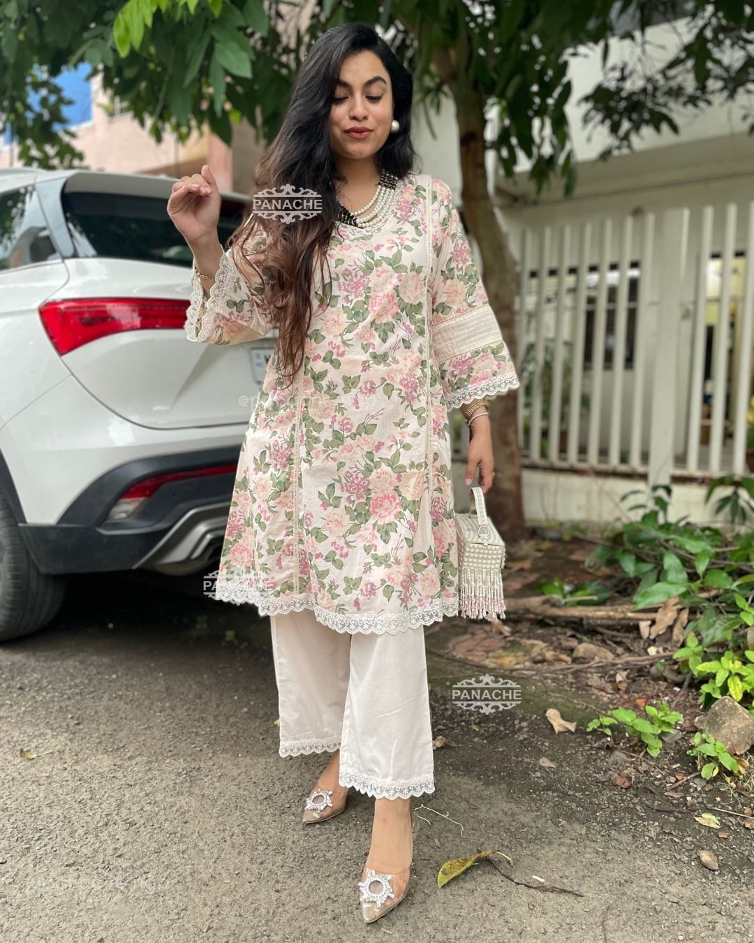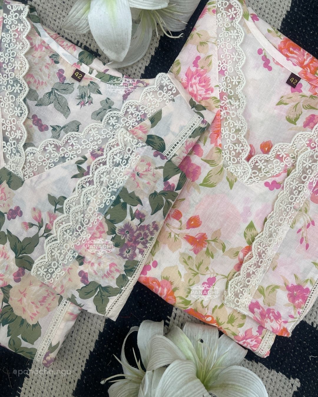 🟣 Casual Karachi lace coords with details on sleeves Daman of kurta and pants