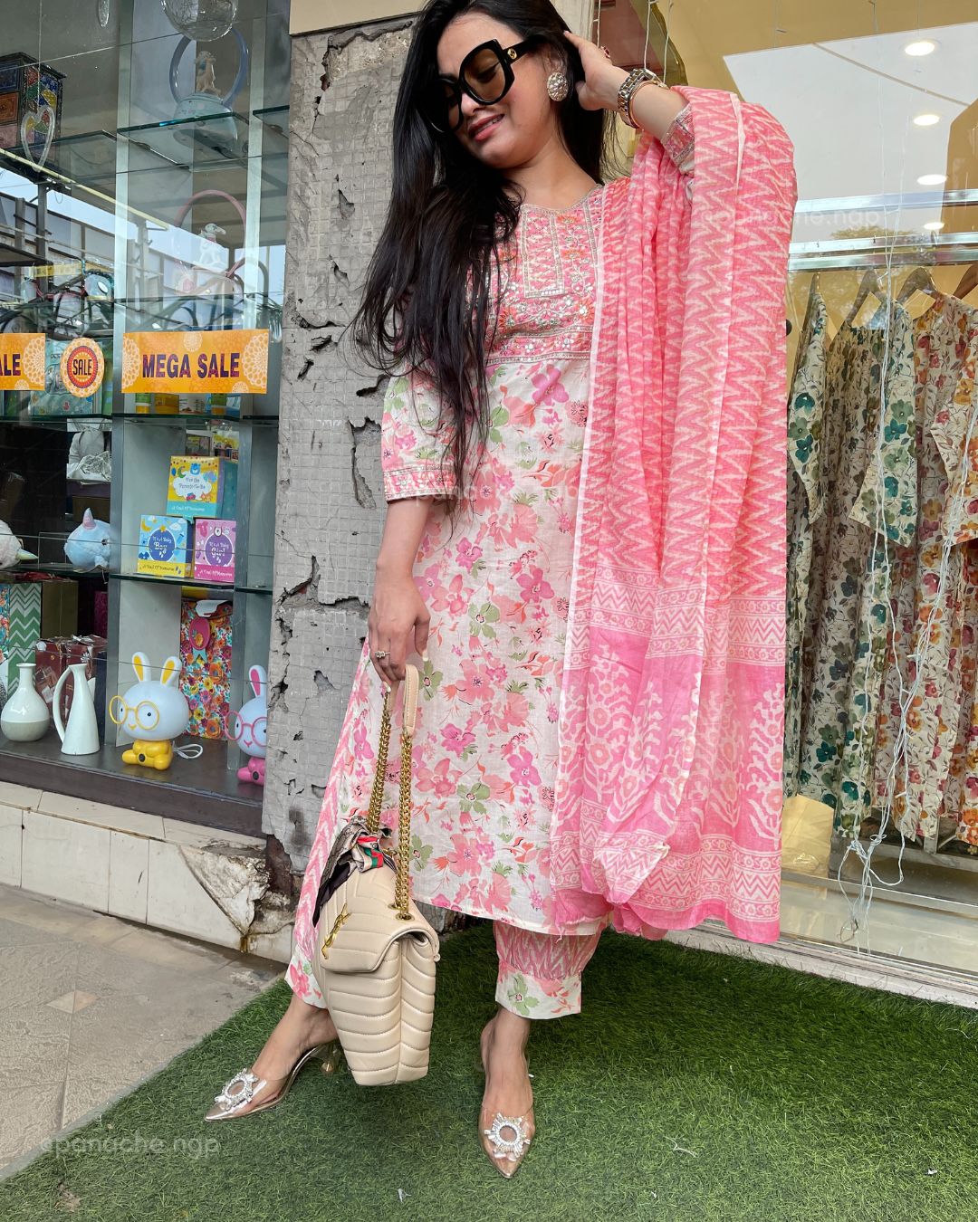 🟣 Semiformal Daily wear set in pure cotton with highlight on yolk and salwar pattern/ Afghani pants