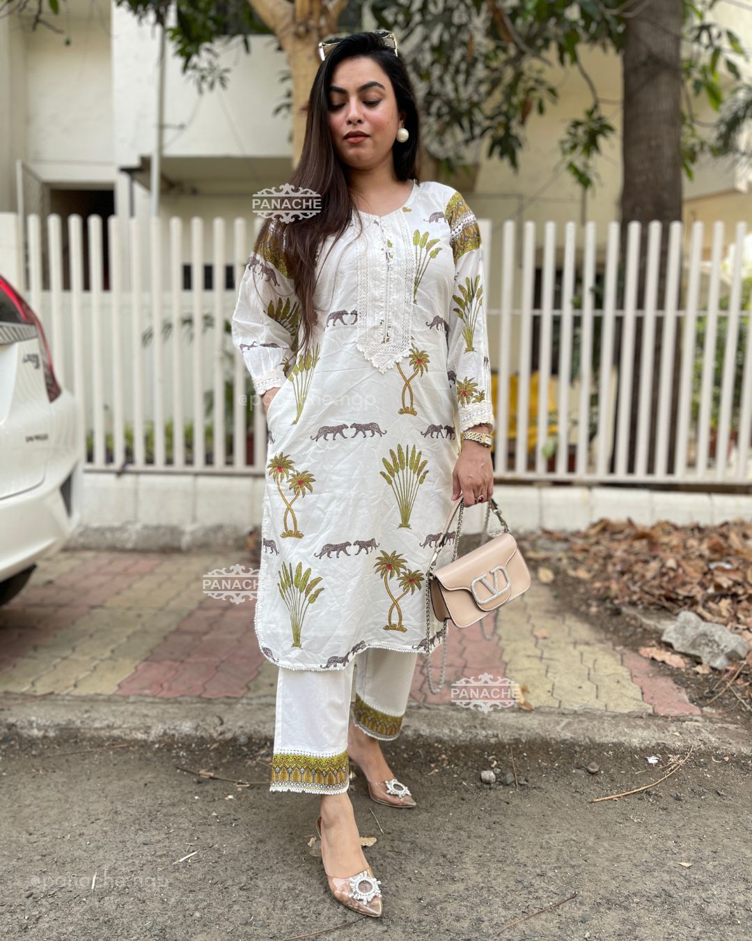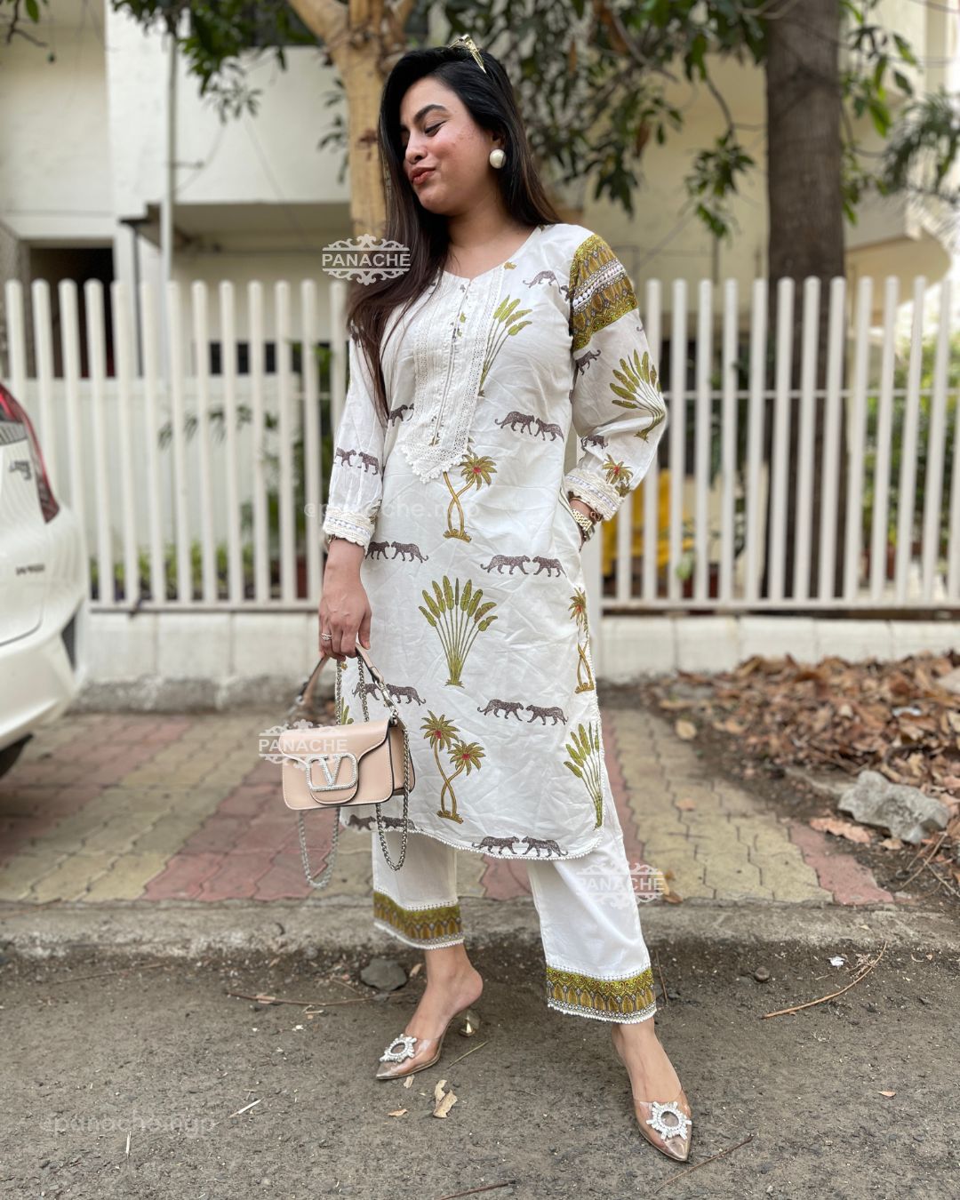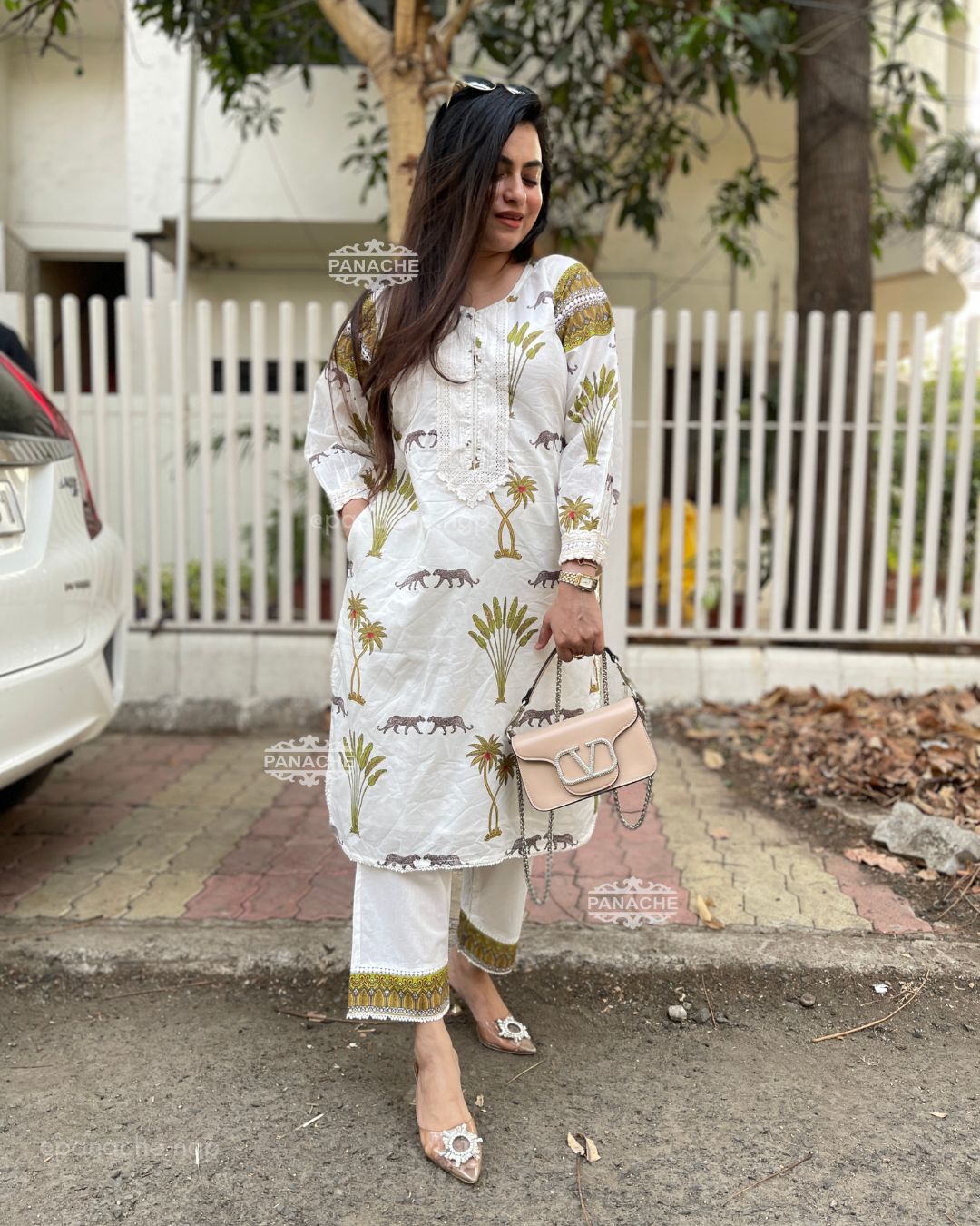 🟣 Crosia details on shoulder with cute sleeves and apple cut kurta with pleasant pants