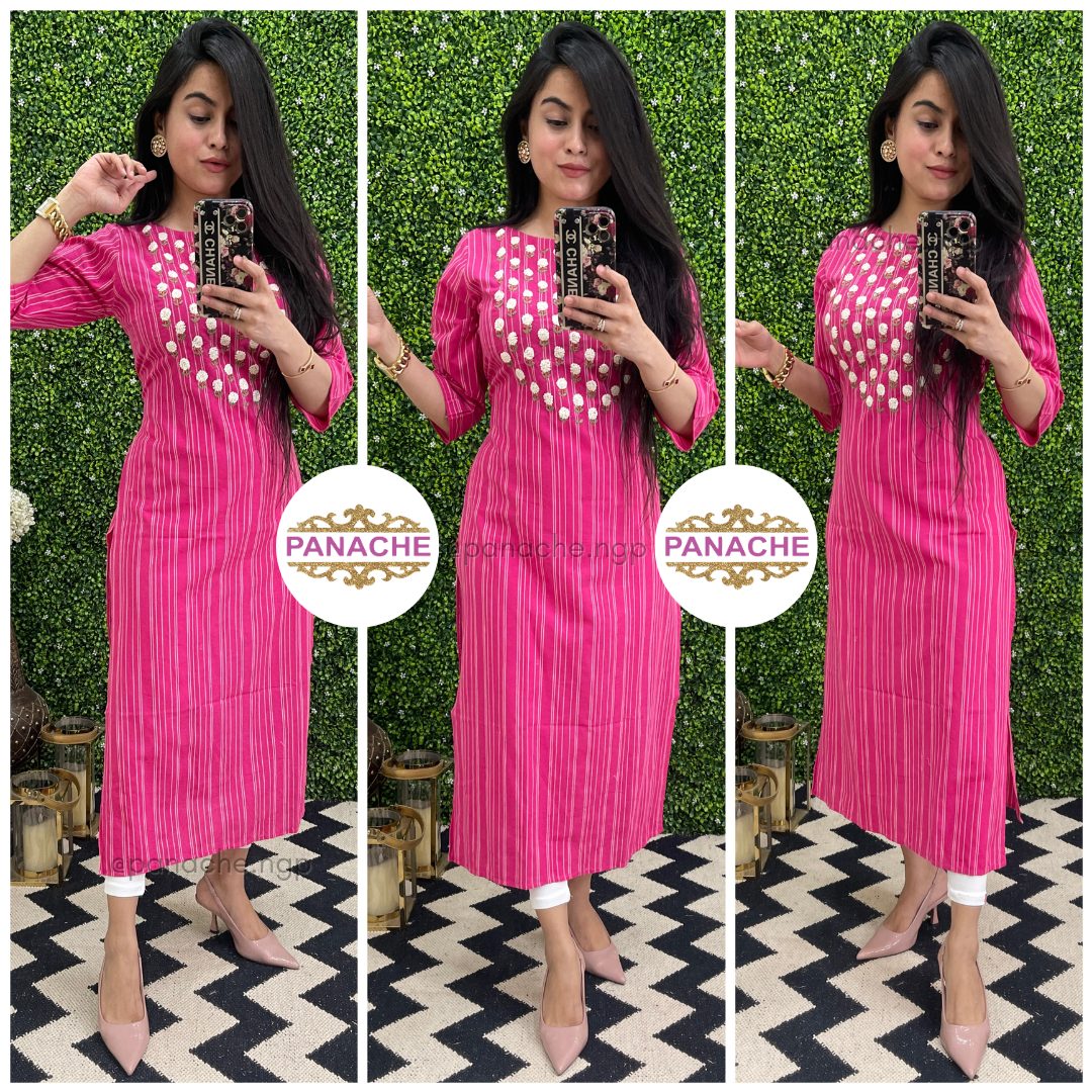 🟣 Self linning Kurtis with frenchknot and water dew queen highlights on neckline