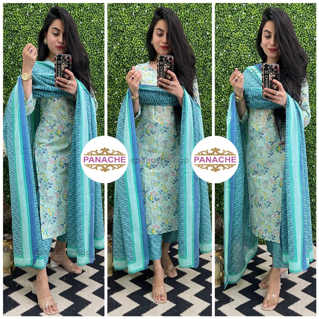 🟣 Print on print kurta pant dupatta set