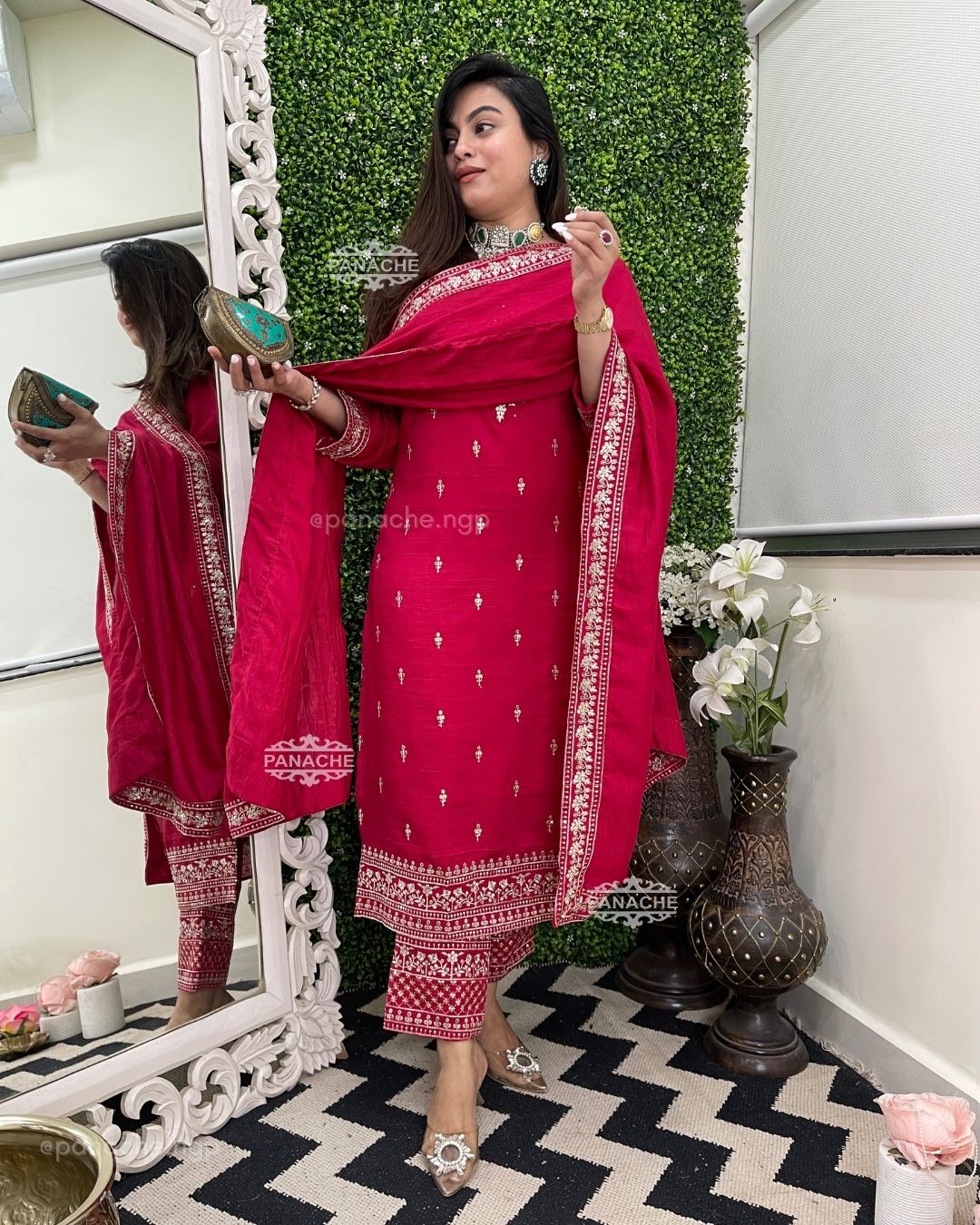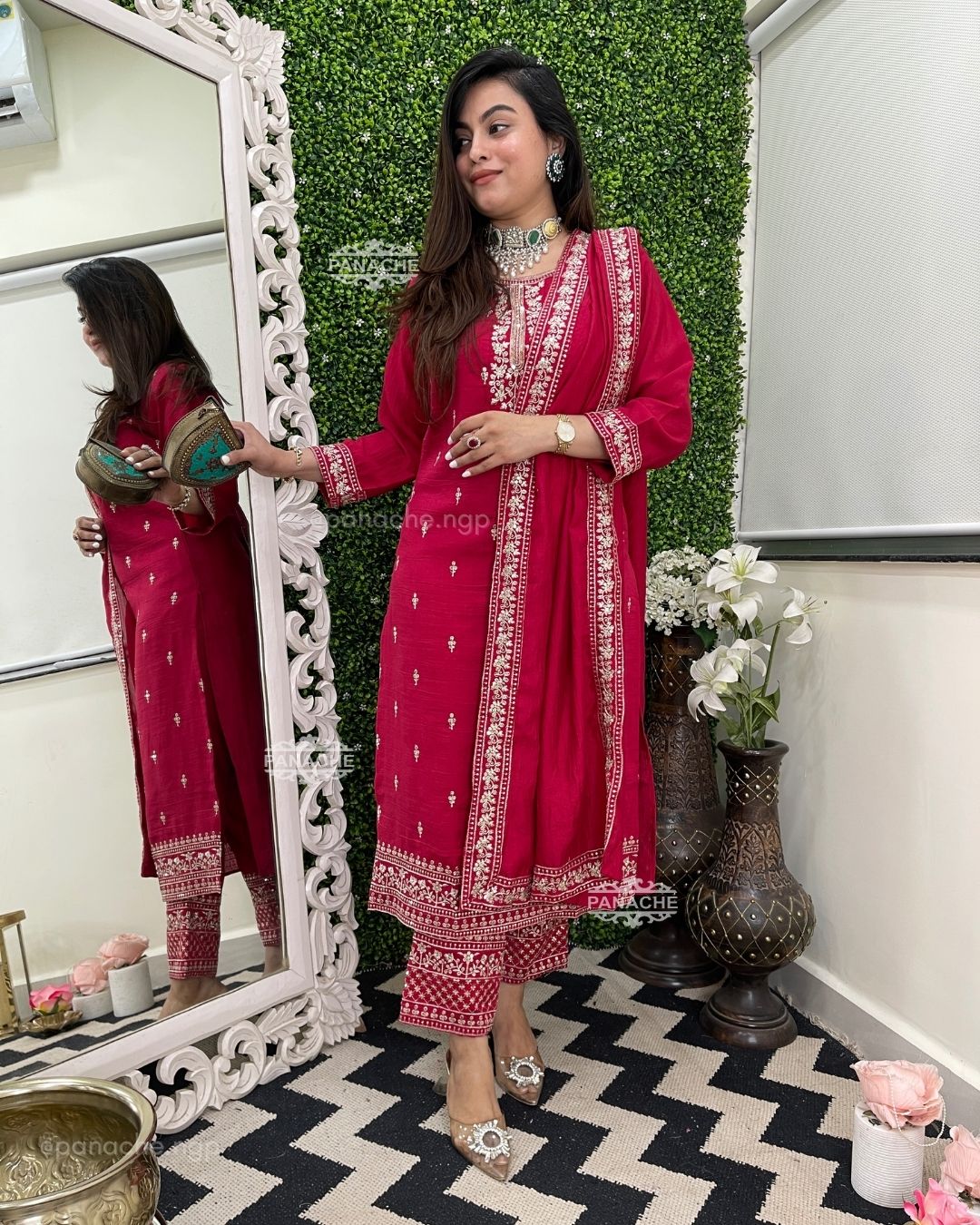🟣 Work on kurta, daman, a heavy dupatta that you could match with most outfits!