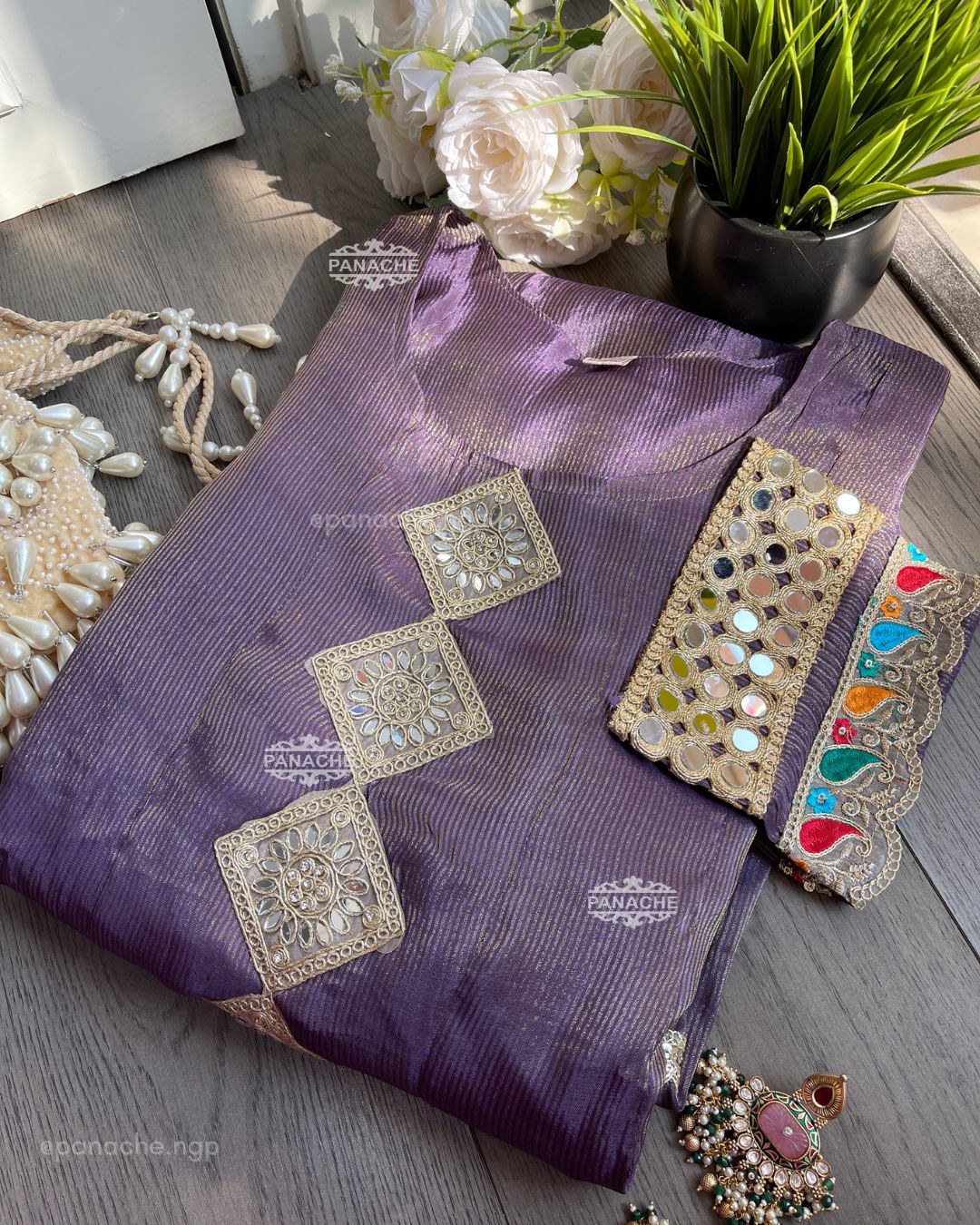 🟣 Triangle tassel on Anarkali with attractive Gota and mirror sleeves heavy Daman and graceful Kalis