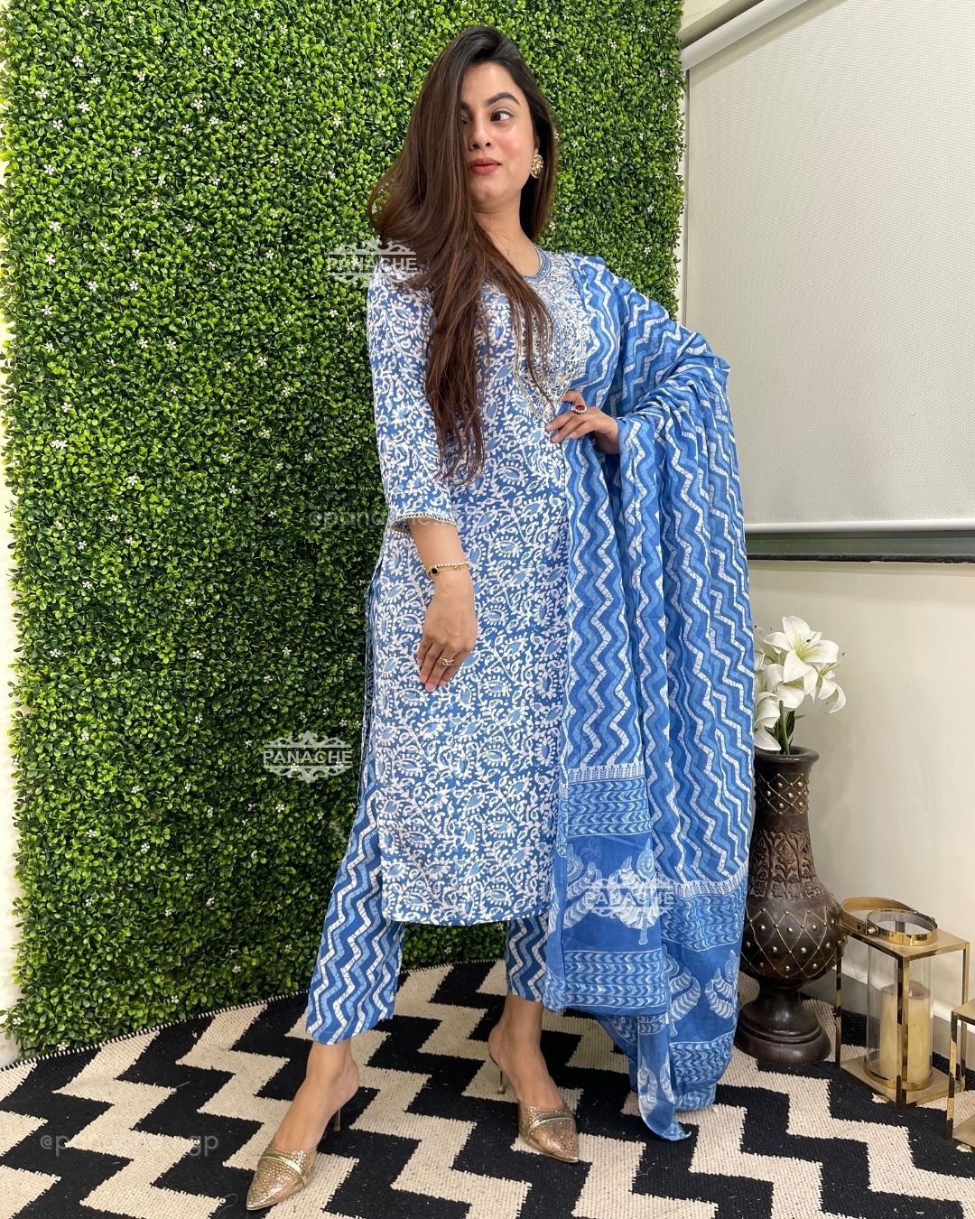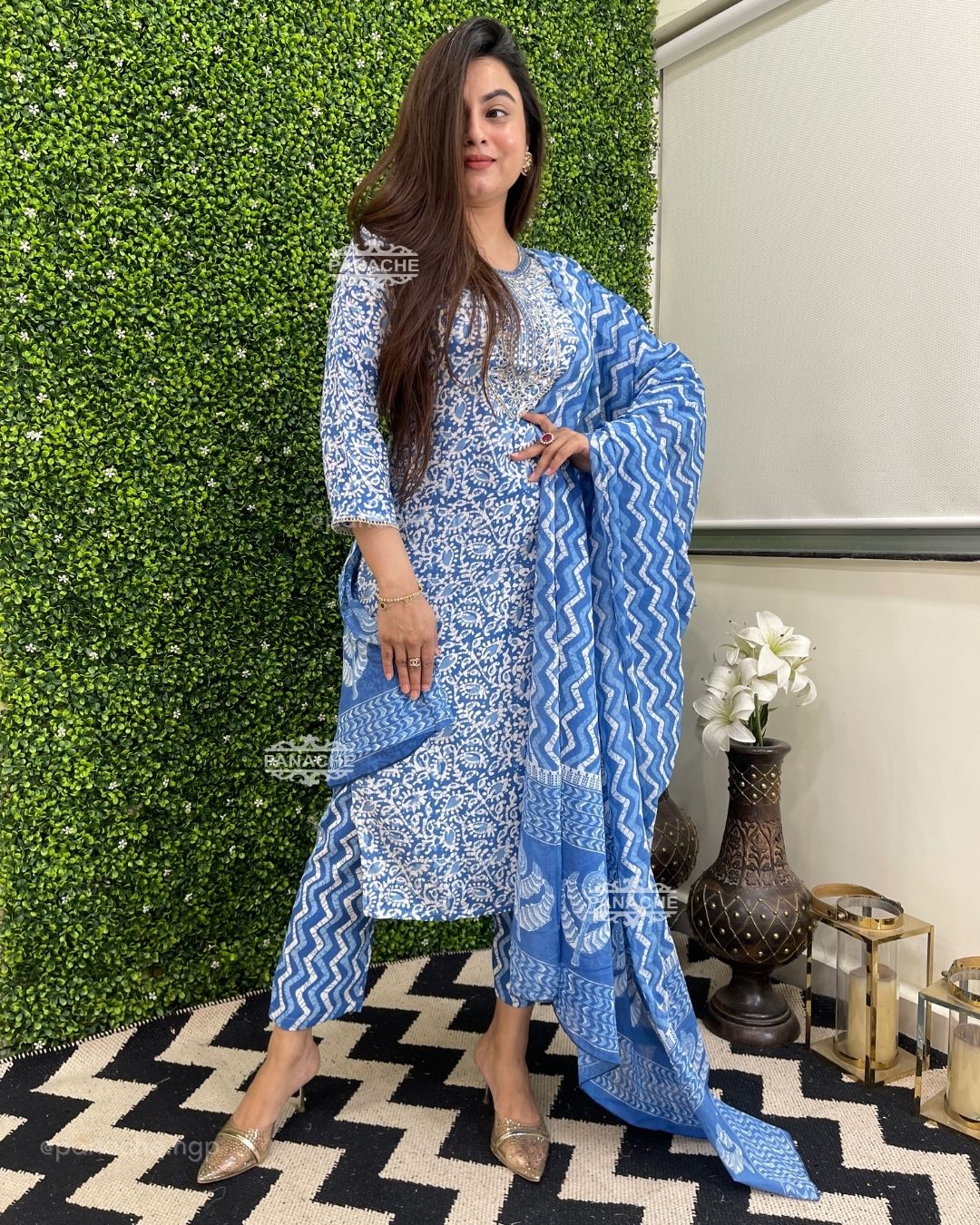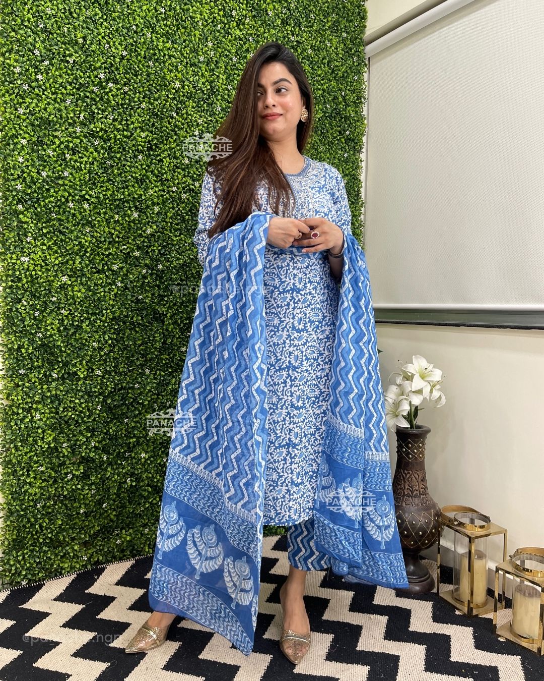 🟣 A embroidered yolk of kurta with beautifully placed dupatta