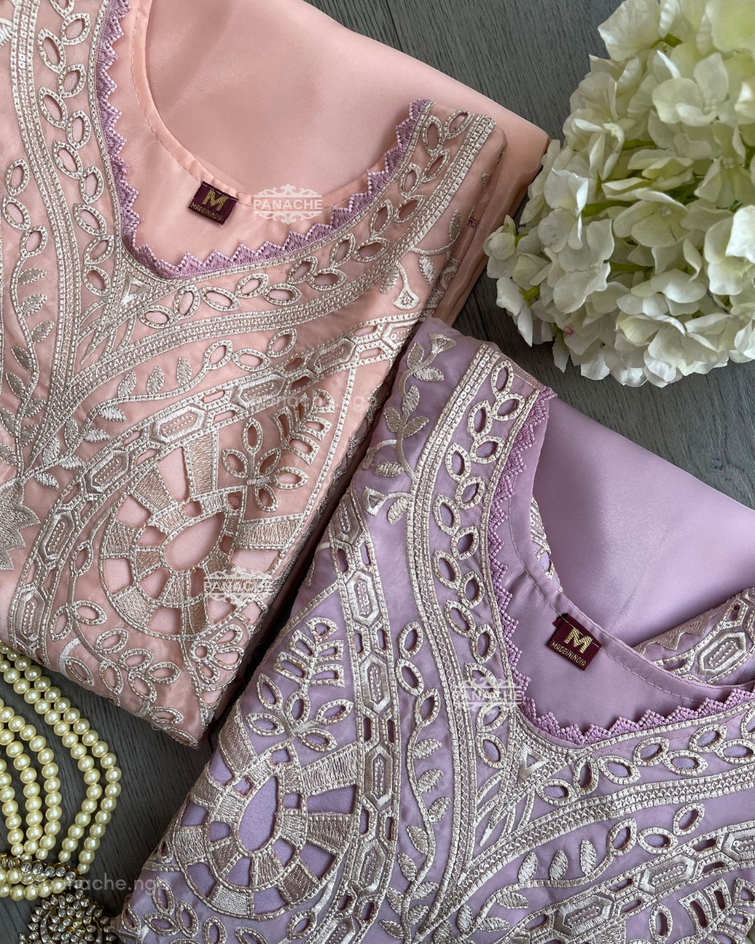 🟣 Best cut work yolk and sleeves on kurta with self orgenza fabric