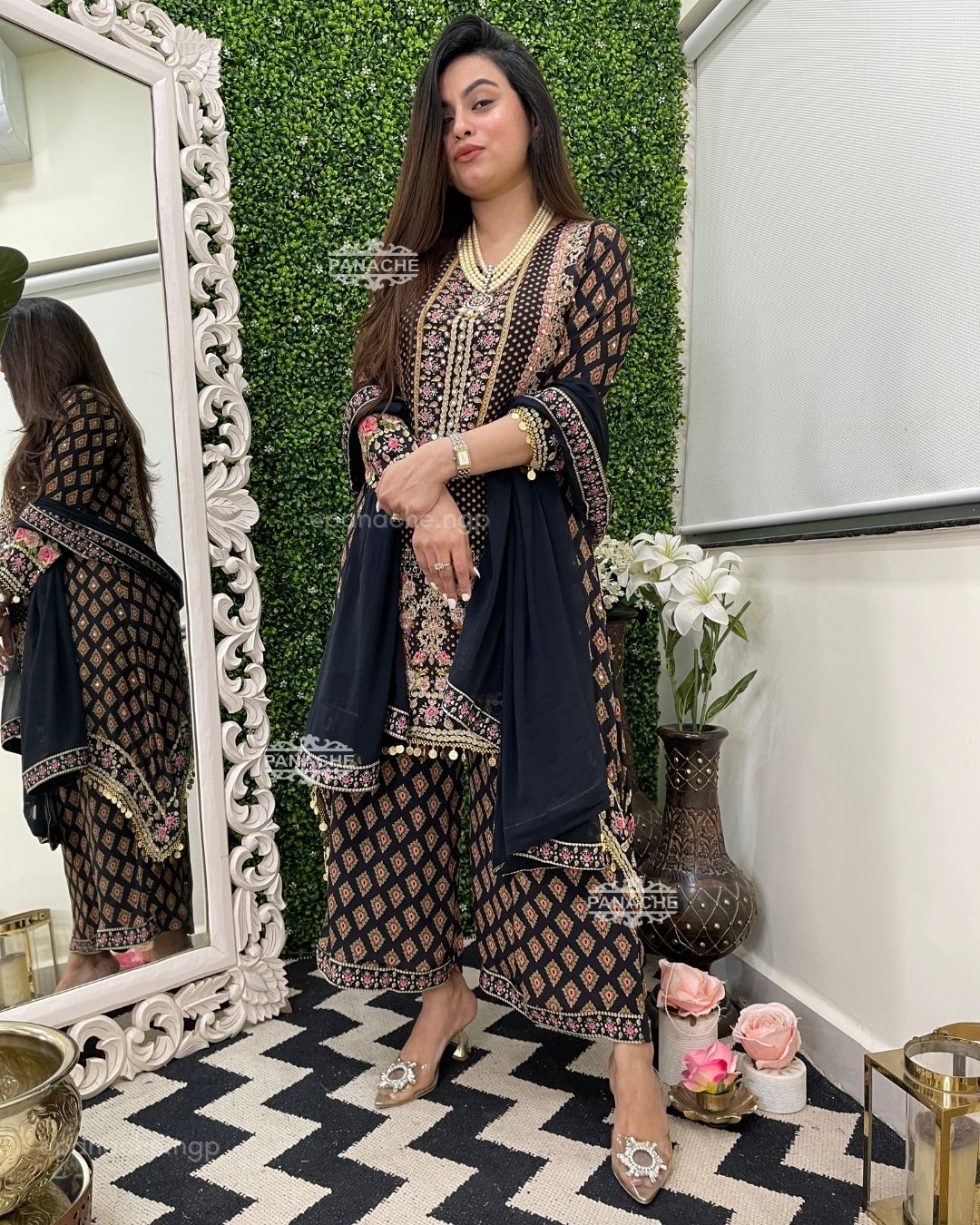 🟣 A mix of colours, beautiful prints placed well and a combination with red never to fail! Highlights all over kurta with tassels on kurta