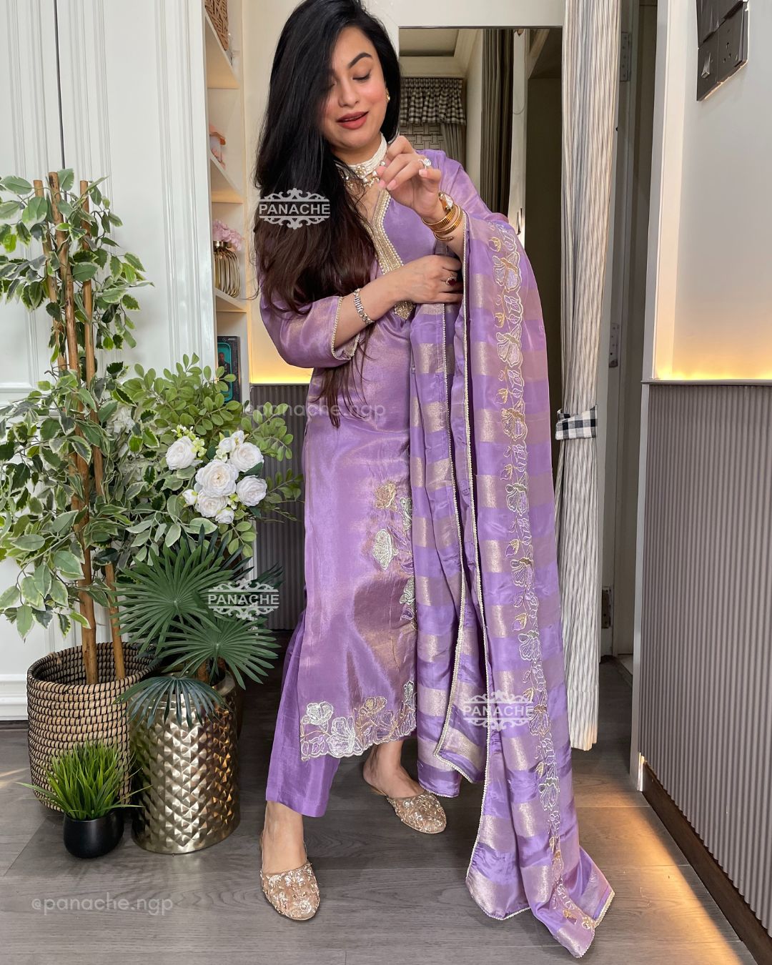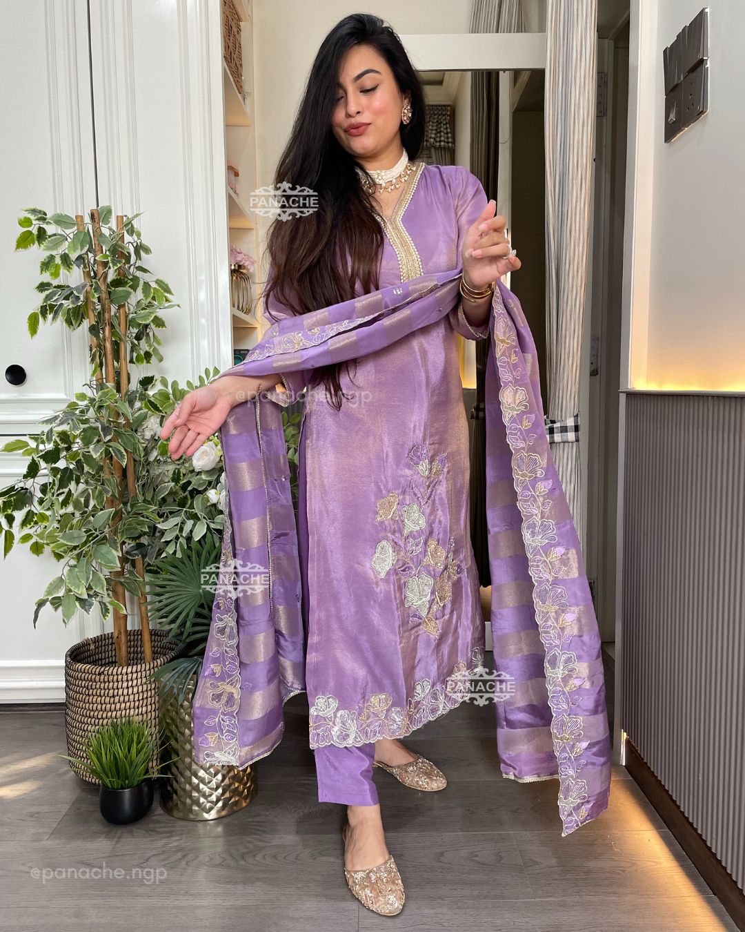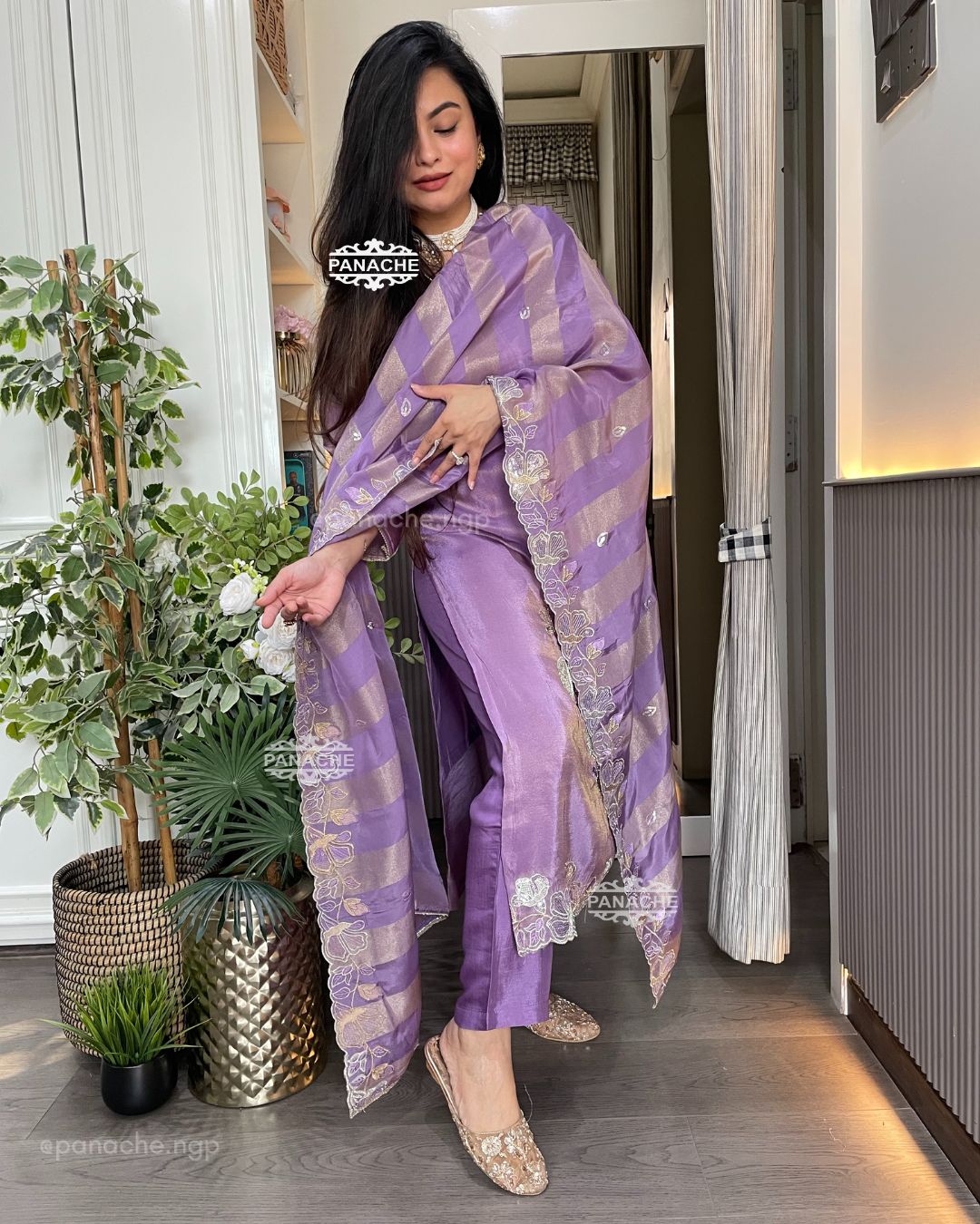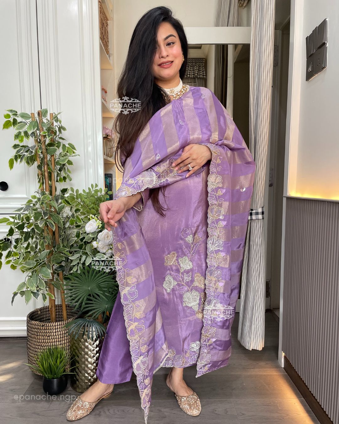 🟣 Party wear set kurta dupatta pant with a heavy dupatta and heavy Daman on kurta with one side cutwork and border