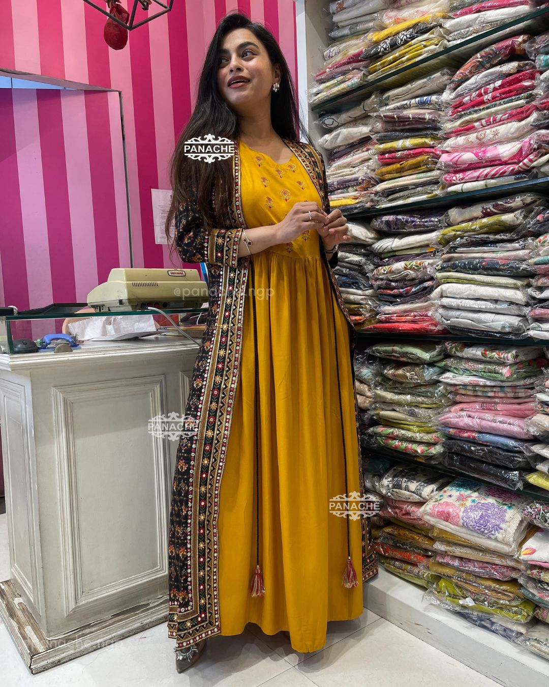 🟣 Sleeveless inner wihh embroidery buttas on yolk and a long cape with embroidered sides giving it cute feels