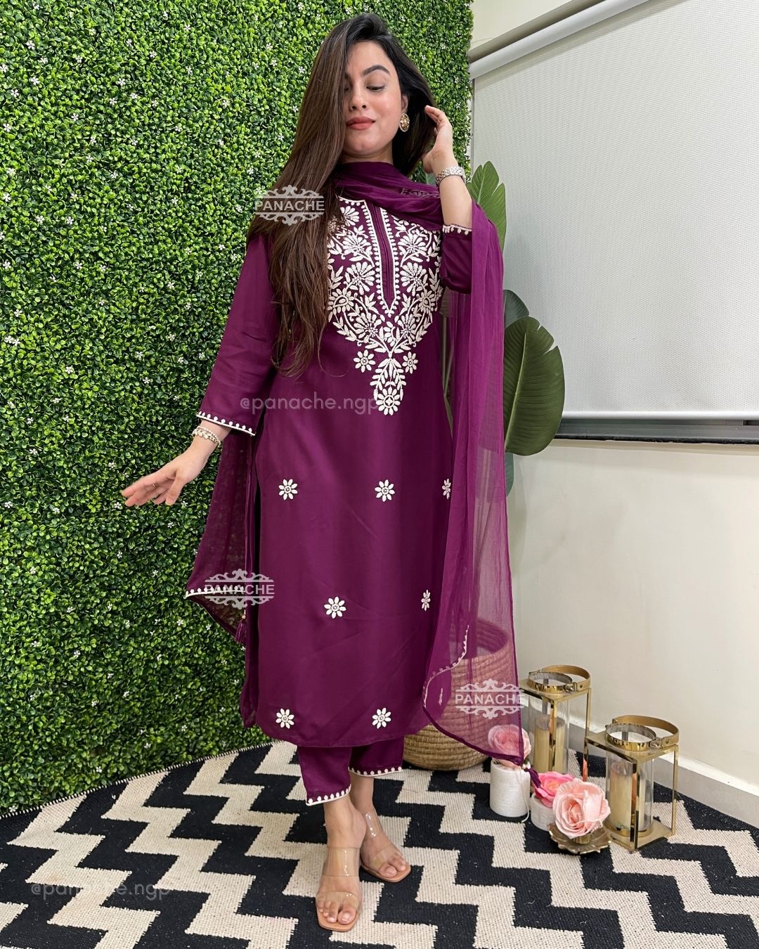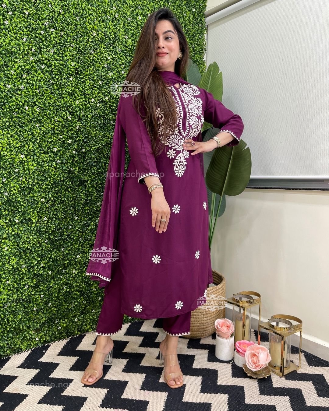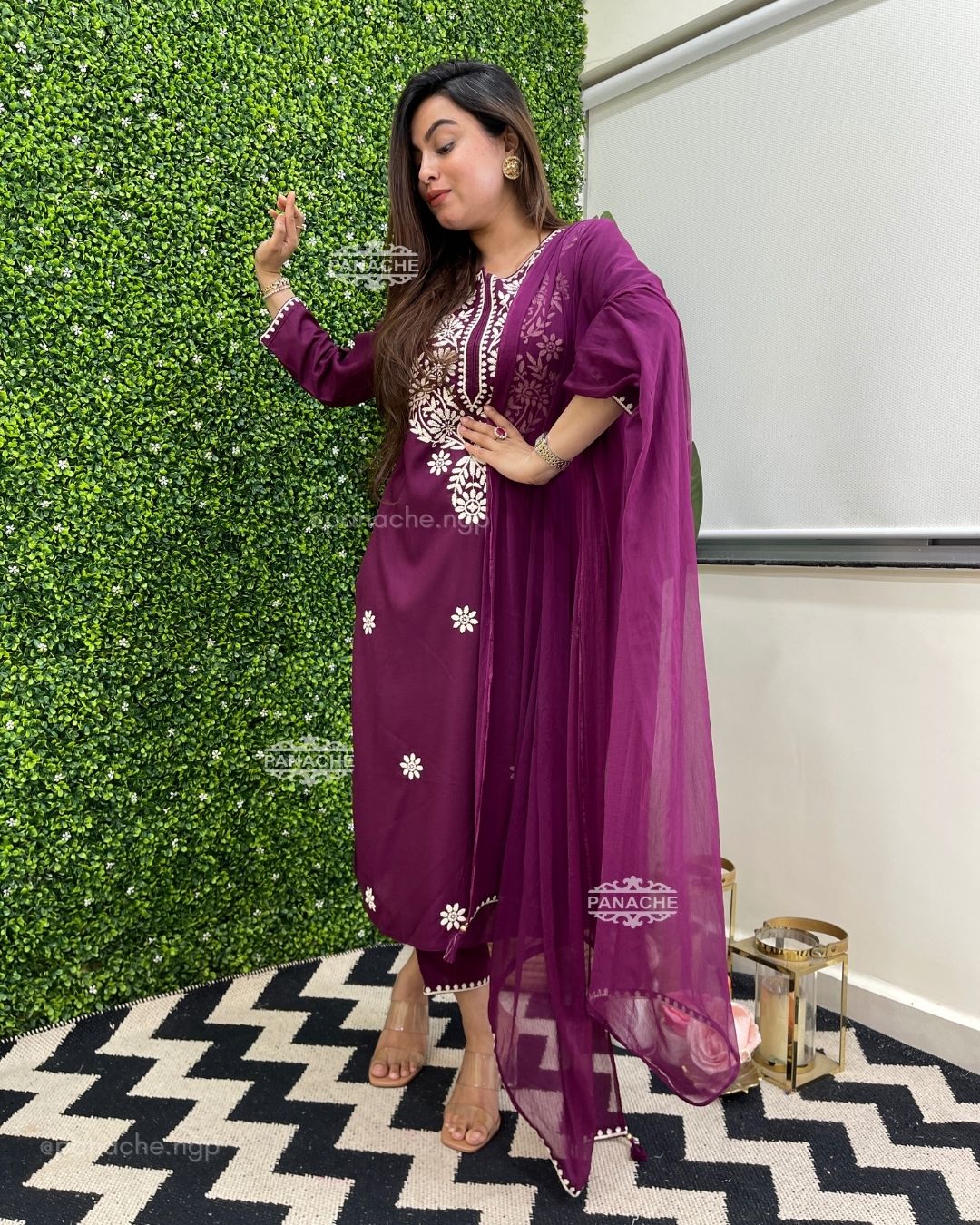 🟣 A thread work inspired with Lucknowi embroidery and a colour that we just can’t turn down!
