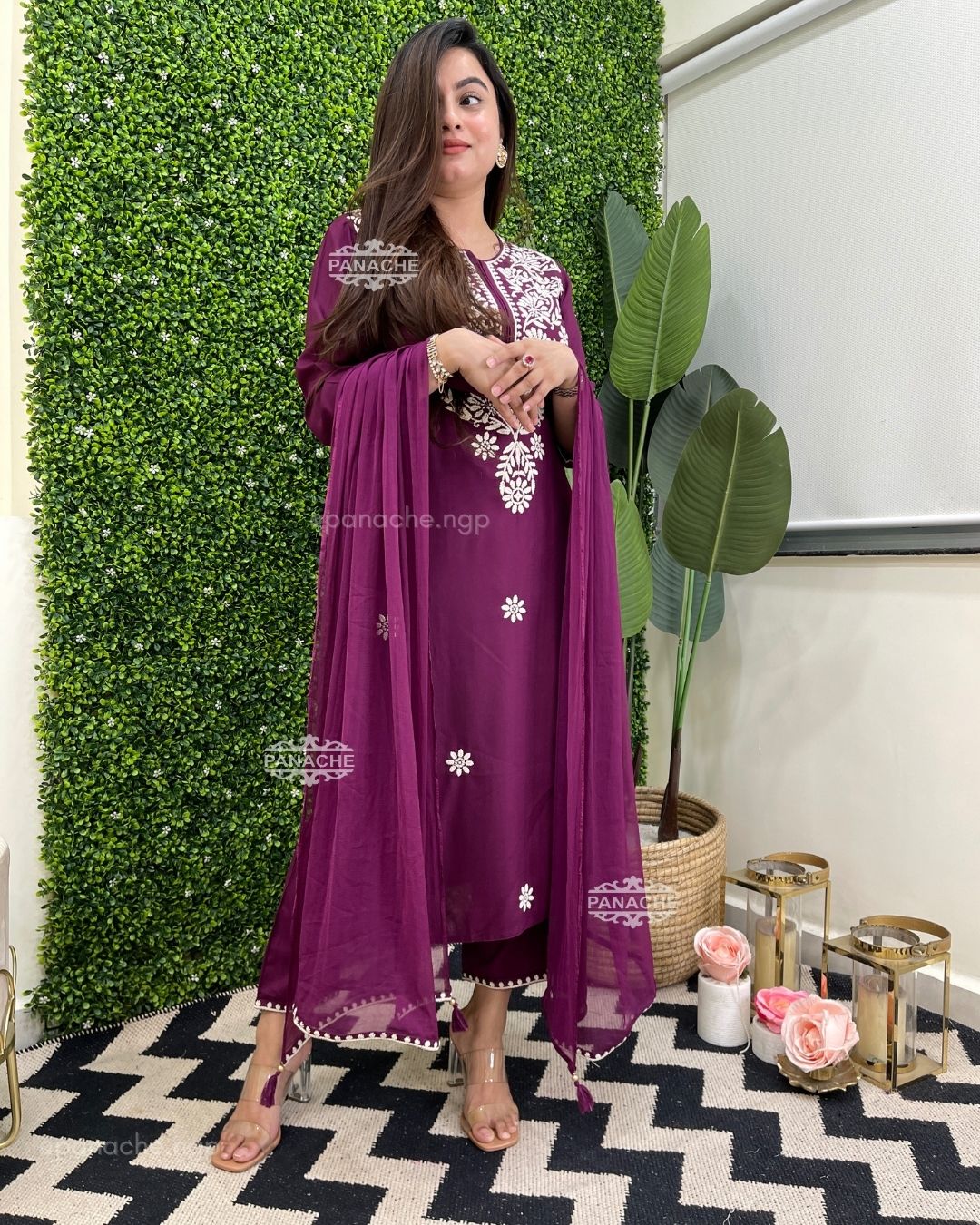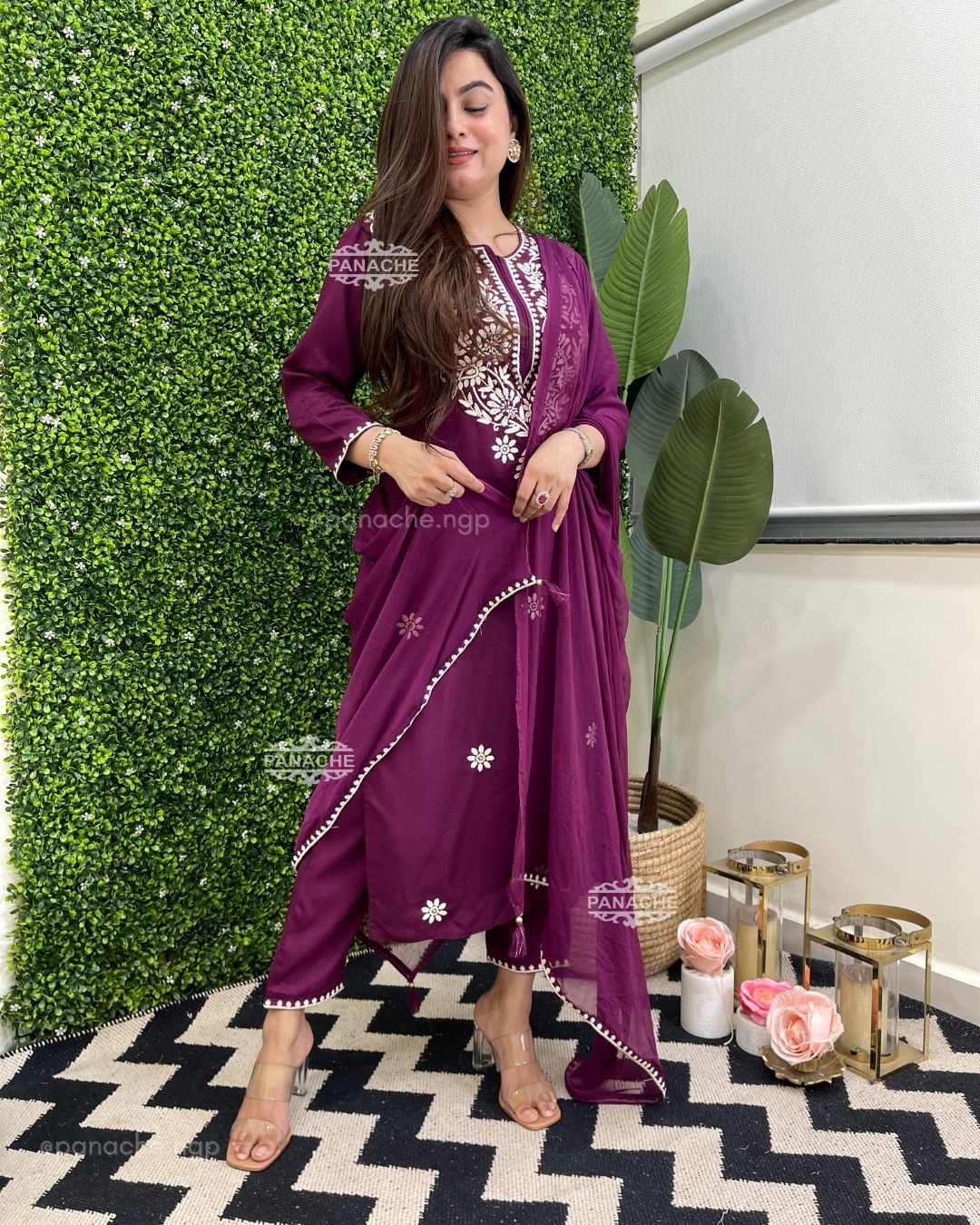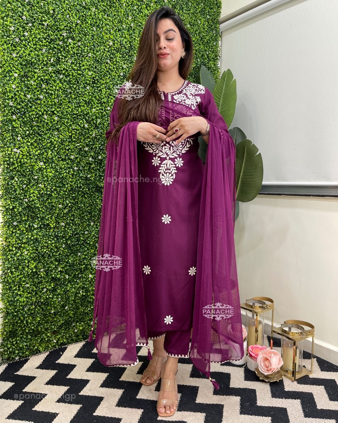 🟣 A thread work inspired with Lucknowi embroidery and a colour that we just can’t turn down!