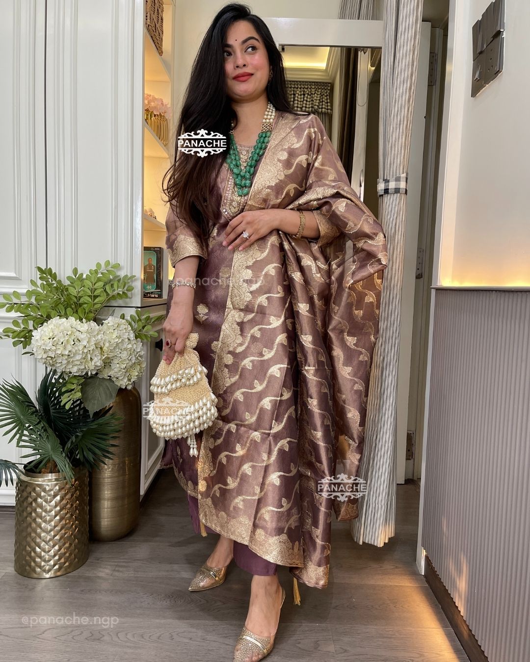 🟣 Handwork button Patti with a jacquard self fabric and a gorgeous dupatta