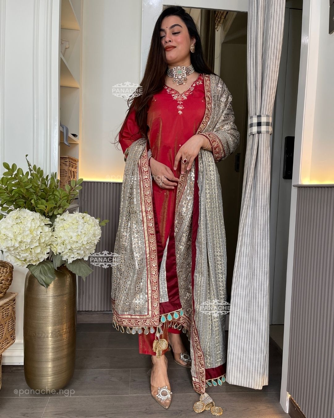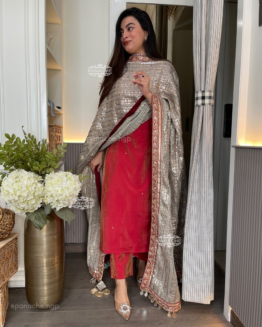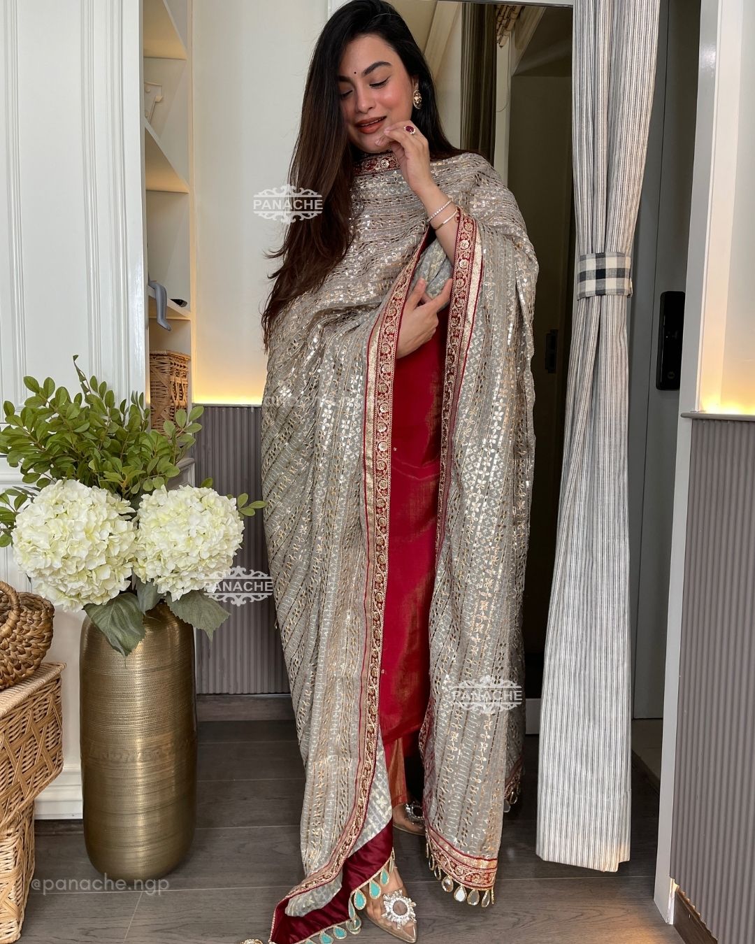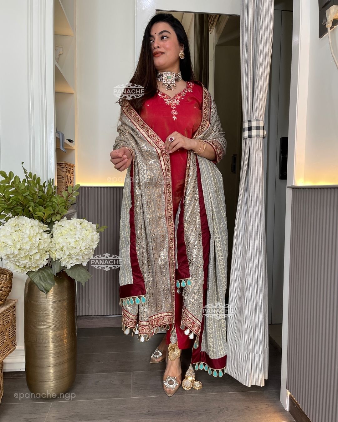 🟣 Fabric of dupatta - Gotta heavy Jaal dupatta
