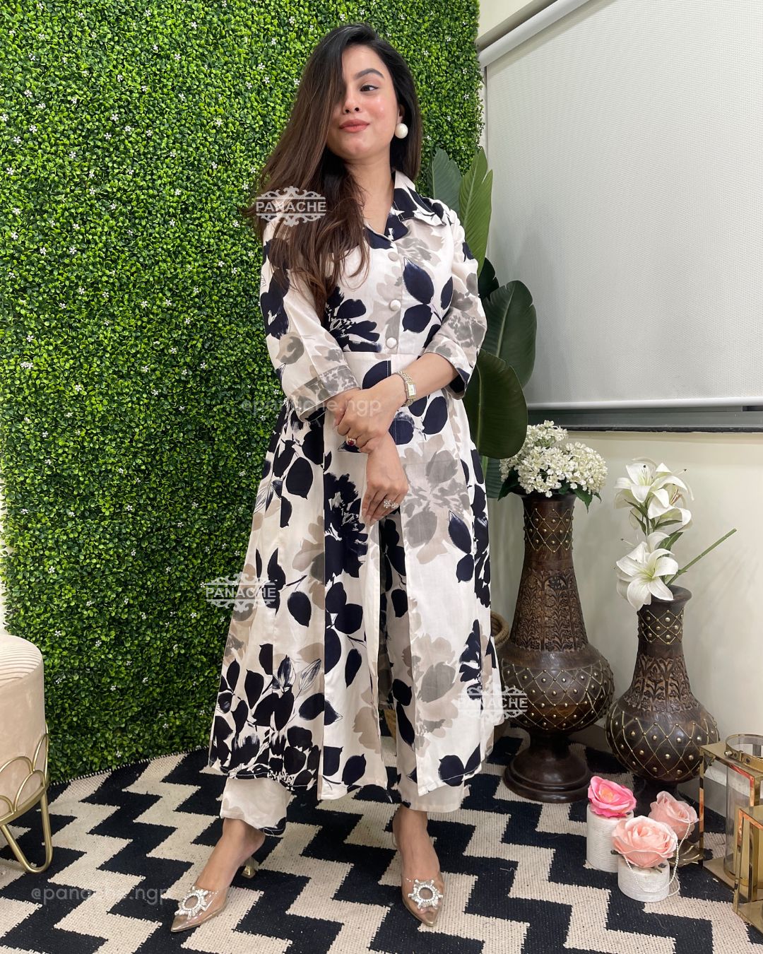 🟣 Collared and buttoned yolk with front slit pattern
