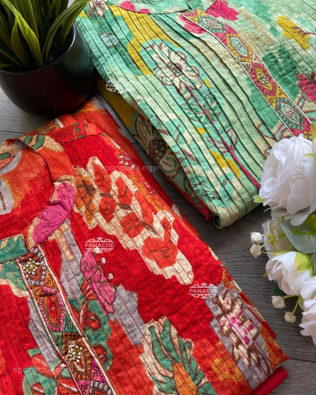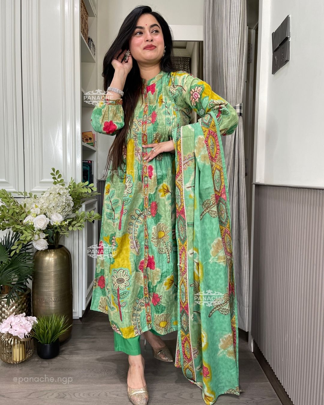 🟣 Cut pipe buttons soothing colour and flowers to make it fresher , with a lovely placement dupatta