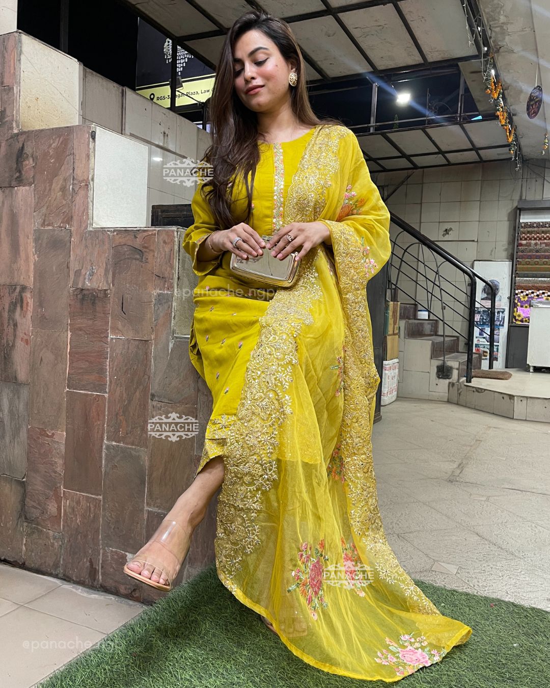 Mustard embroidered karachi suit set