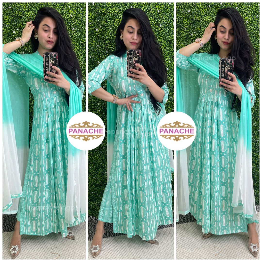 🛍 Nyra cut slub cotton sets with chiffon dupatta
