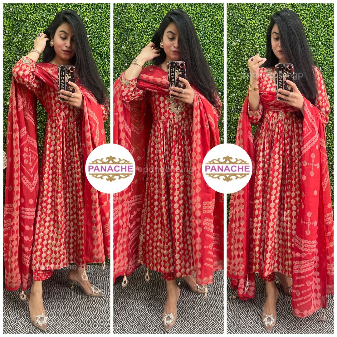 🟣 Tomato Red Muslin Print on print Nyra Cut Set