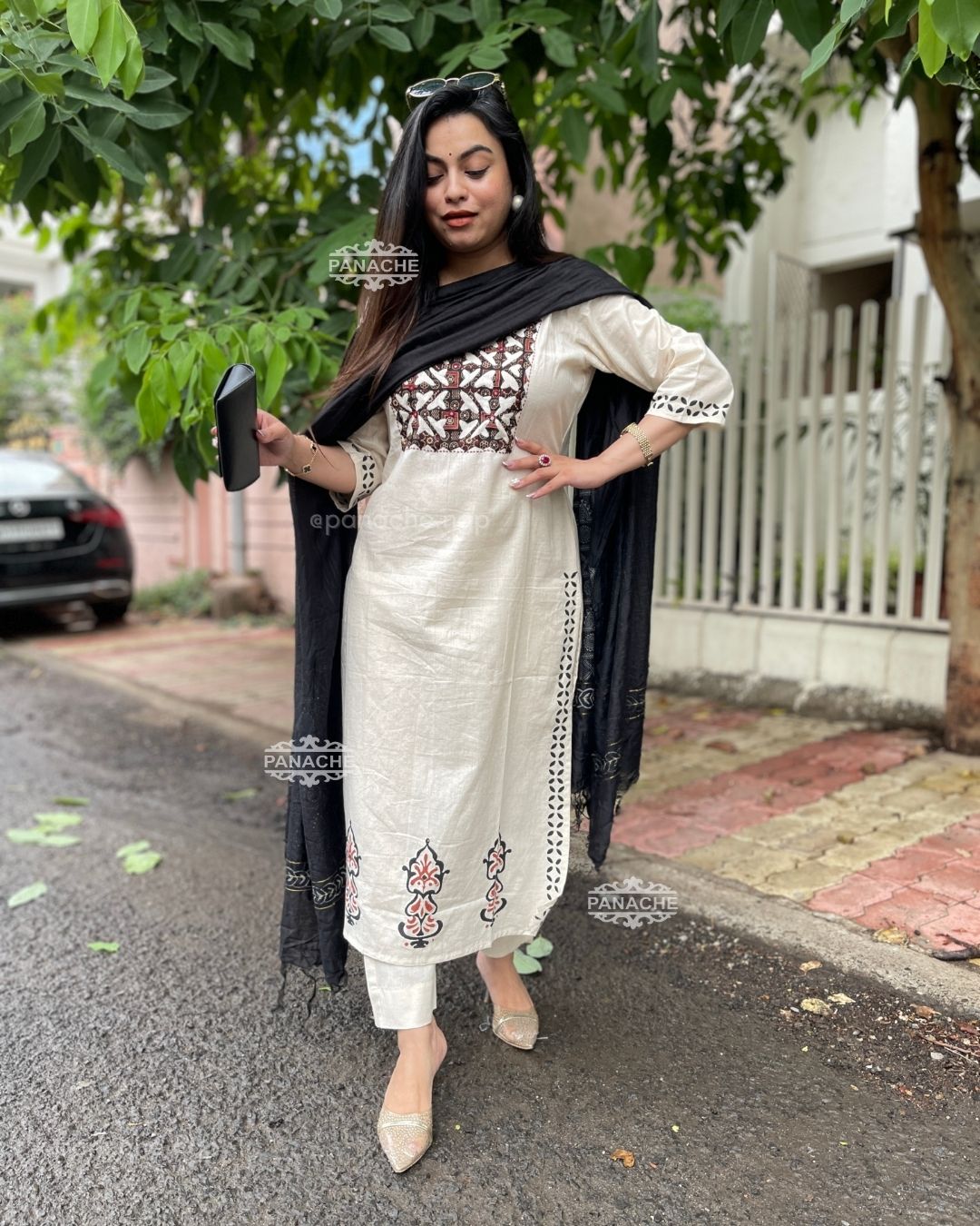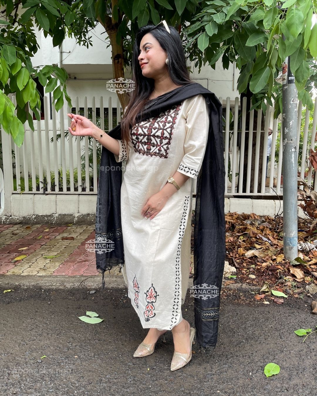 🟣 Perfect for daily wear and all purpose suit, ikkat neckline with a ikkat dupatta and hand-block kurta and sleeves