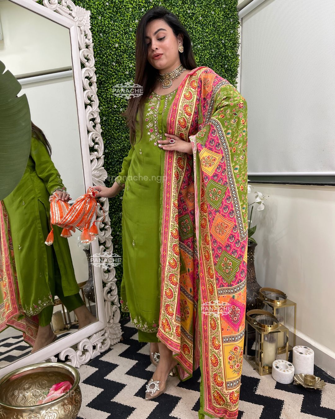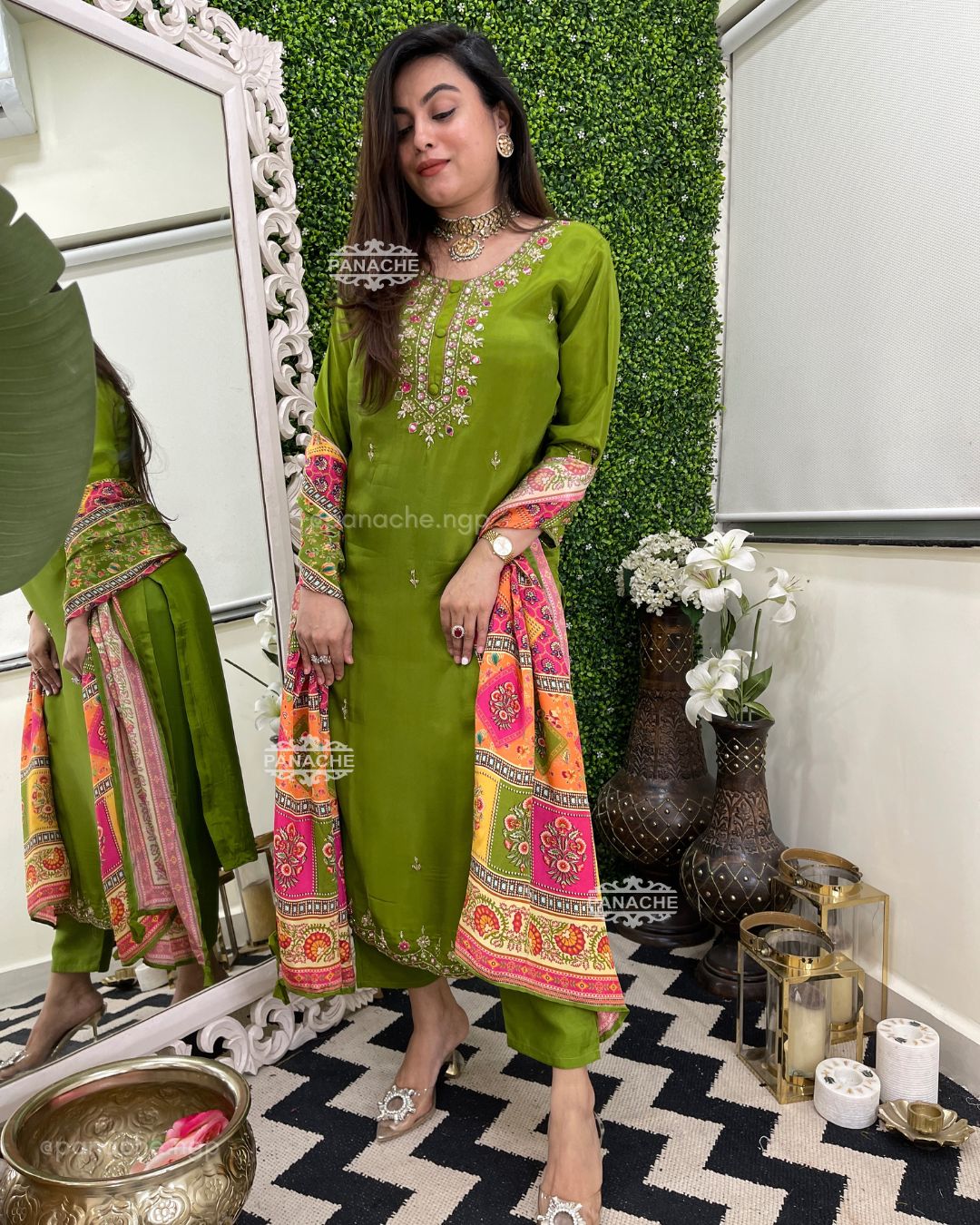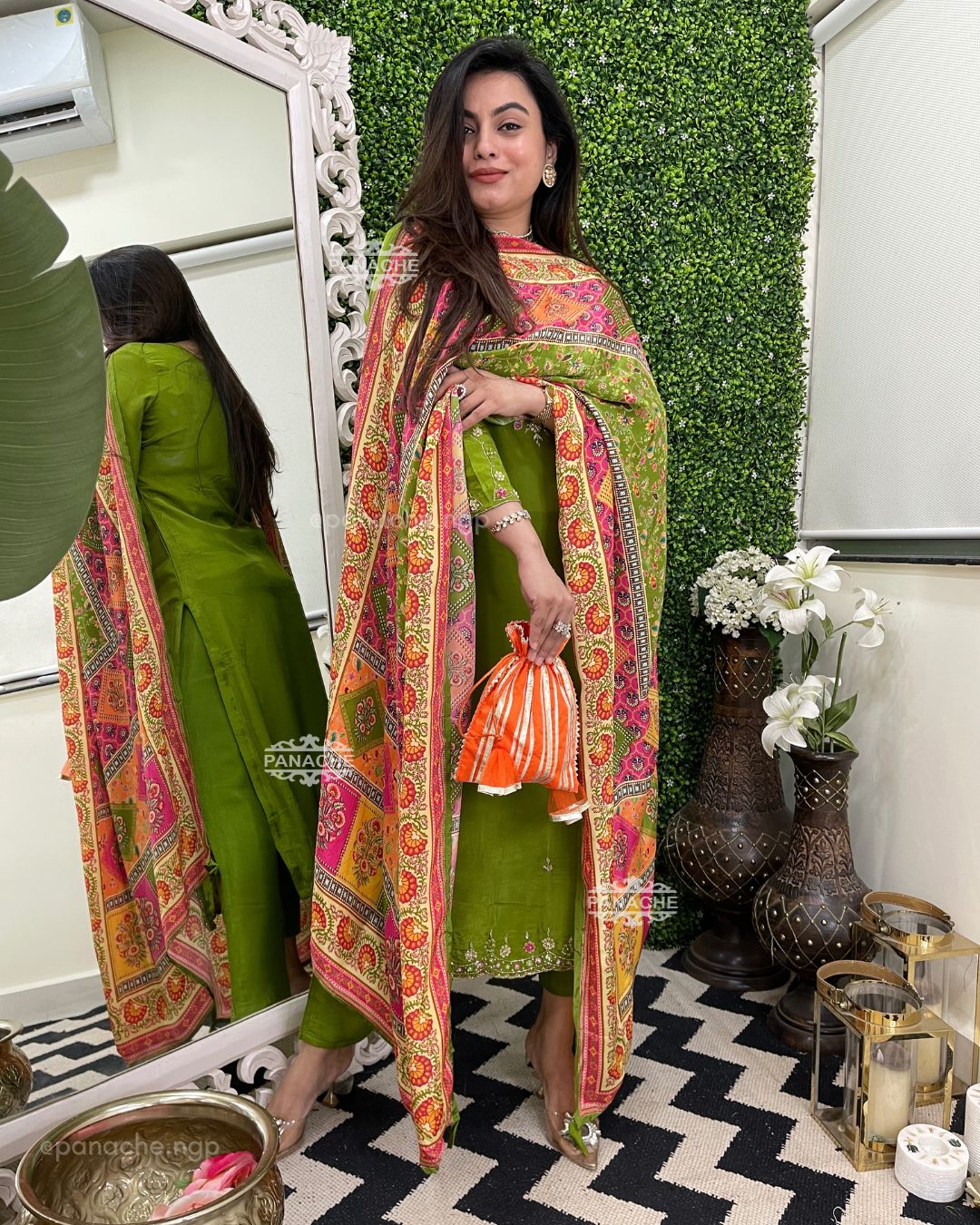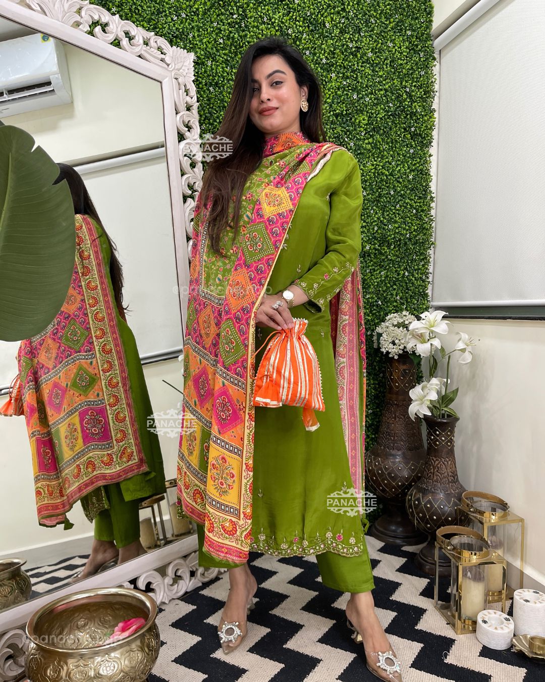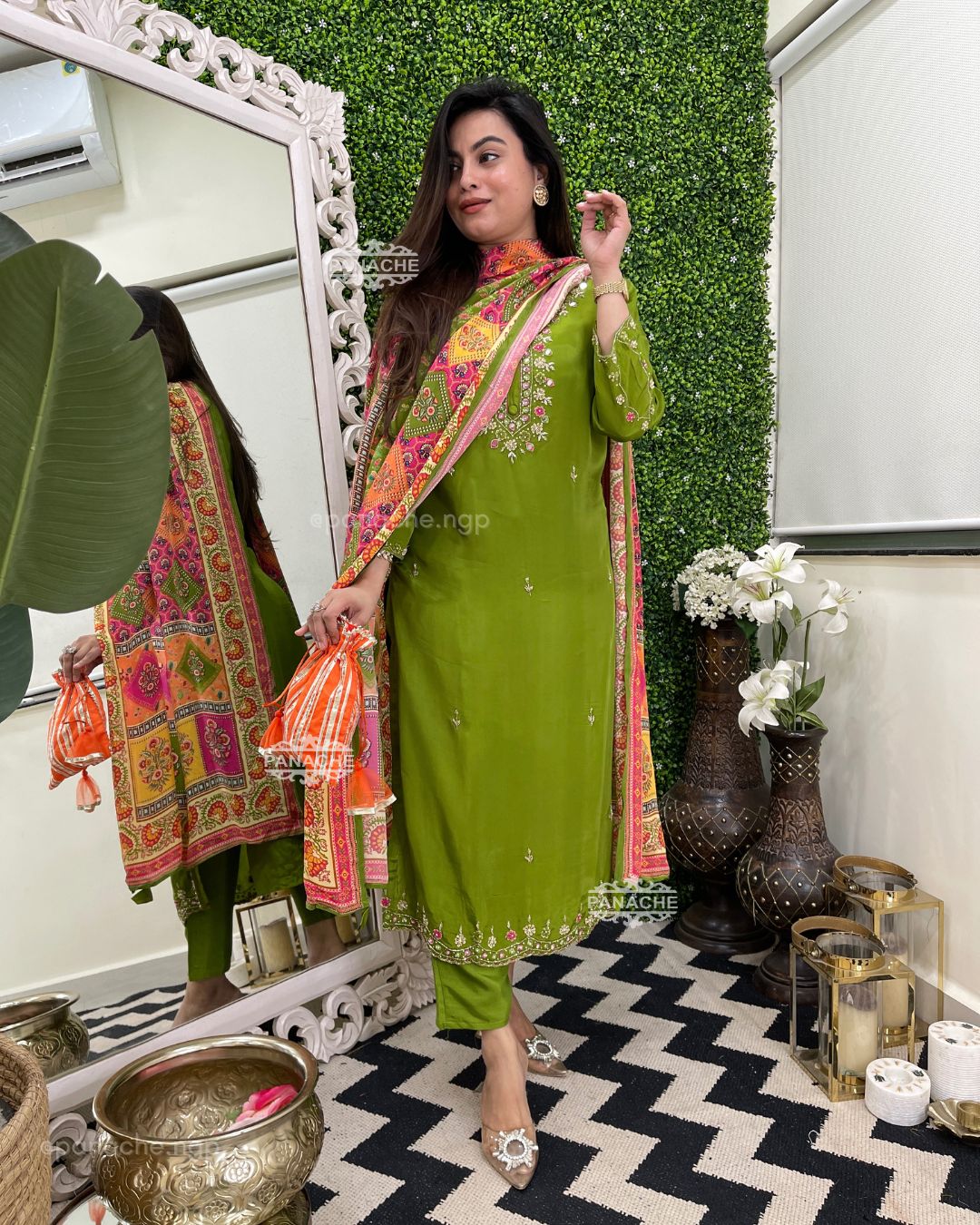🟣 Gorgeous handwork that includes sequein and frenchknot heavy on neckline scalloped daman of kurta and heavy full sleeves