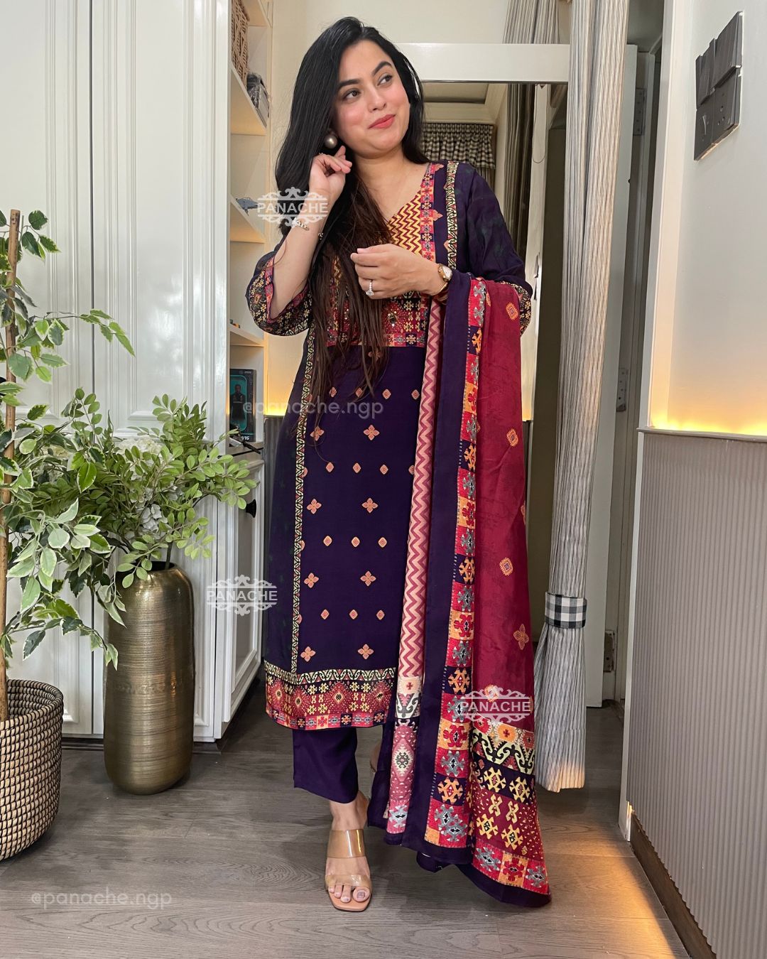 🟣 An evergreen art of Patola on the kurta and Dupatta
