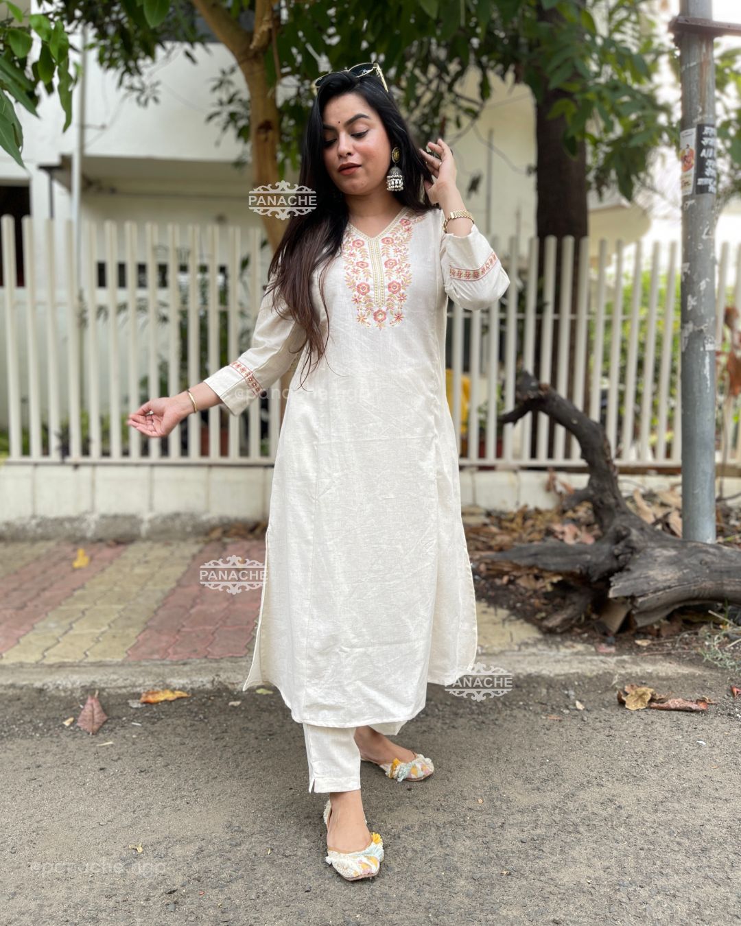 🟣 Delicate embroidery on Aline kurta with ease to wear and carry