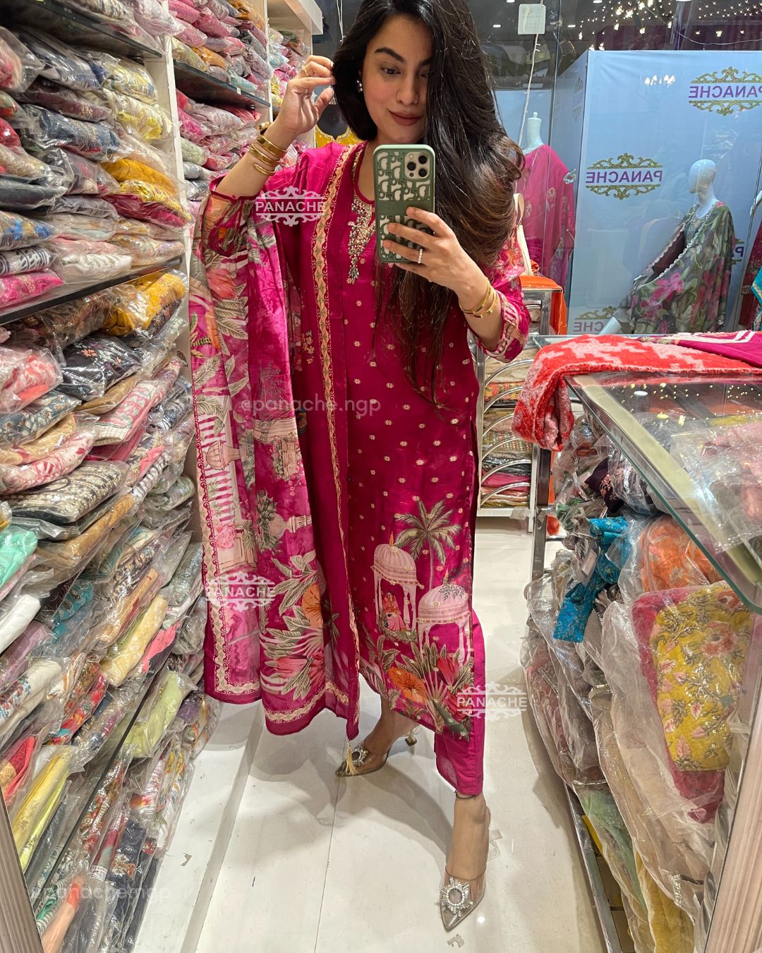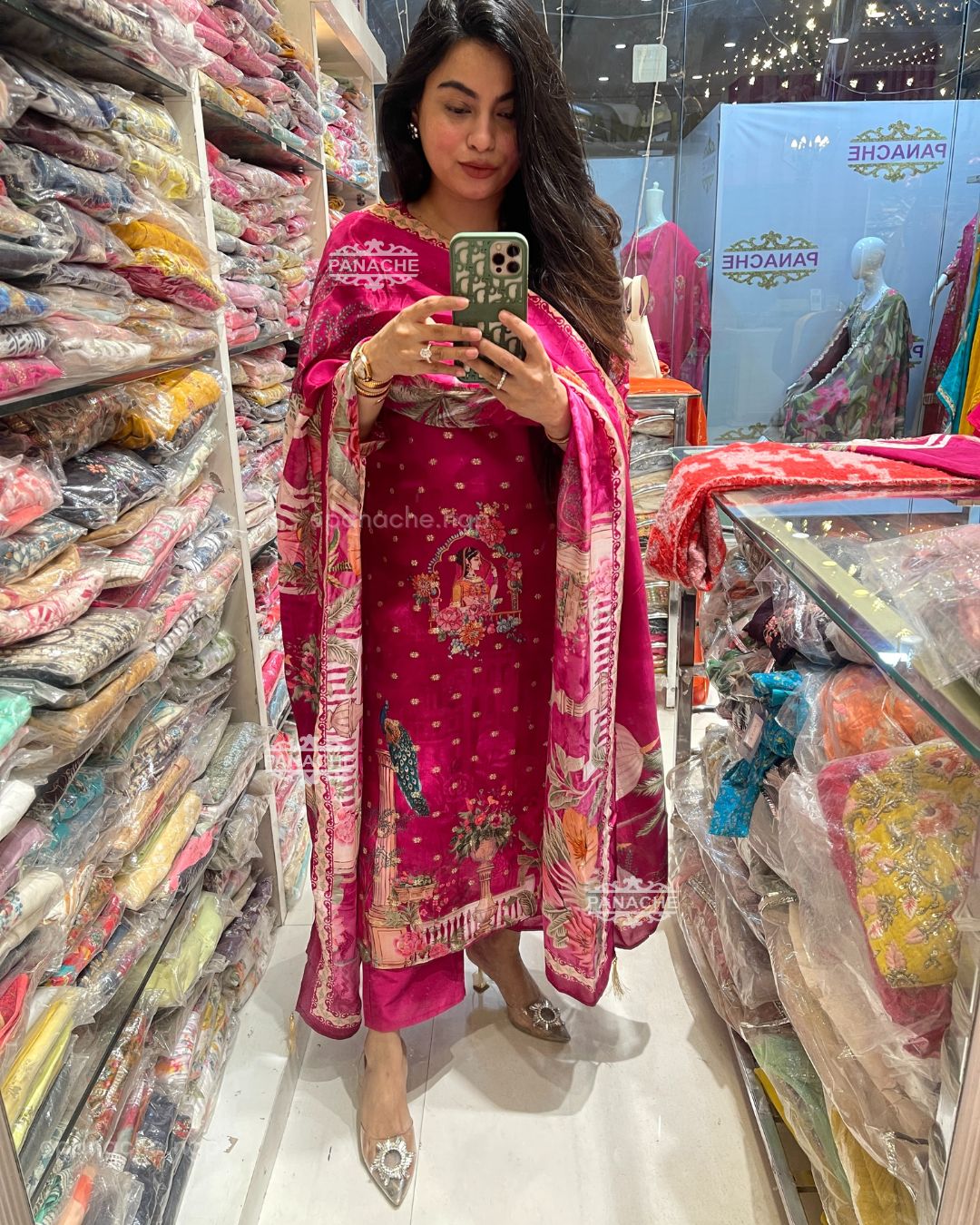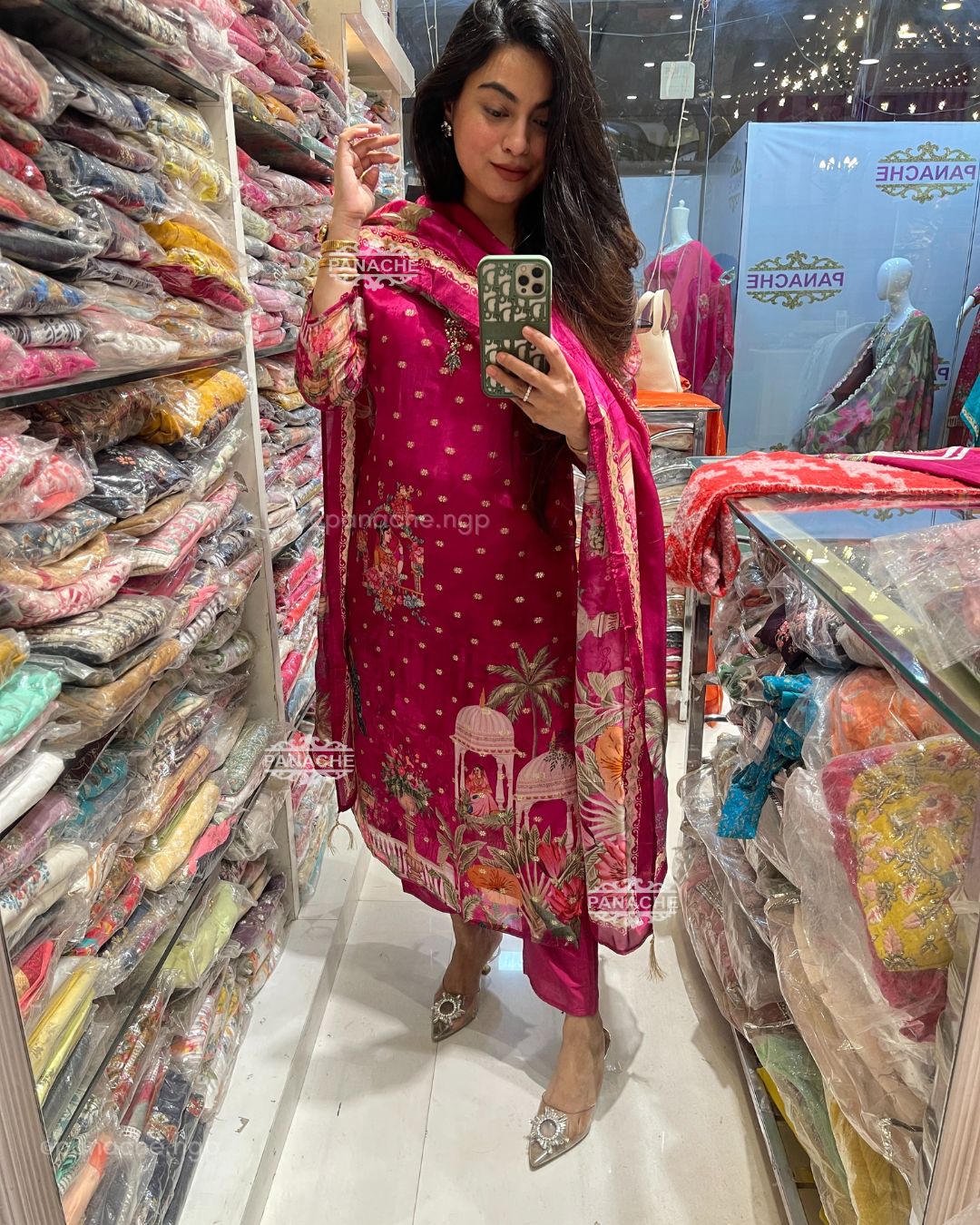 🟣 Small Banarasi buttas on kurta with a attractive print on kurta & dupatta