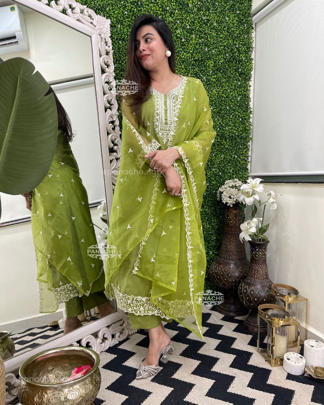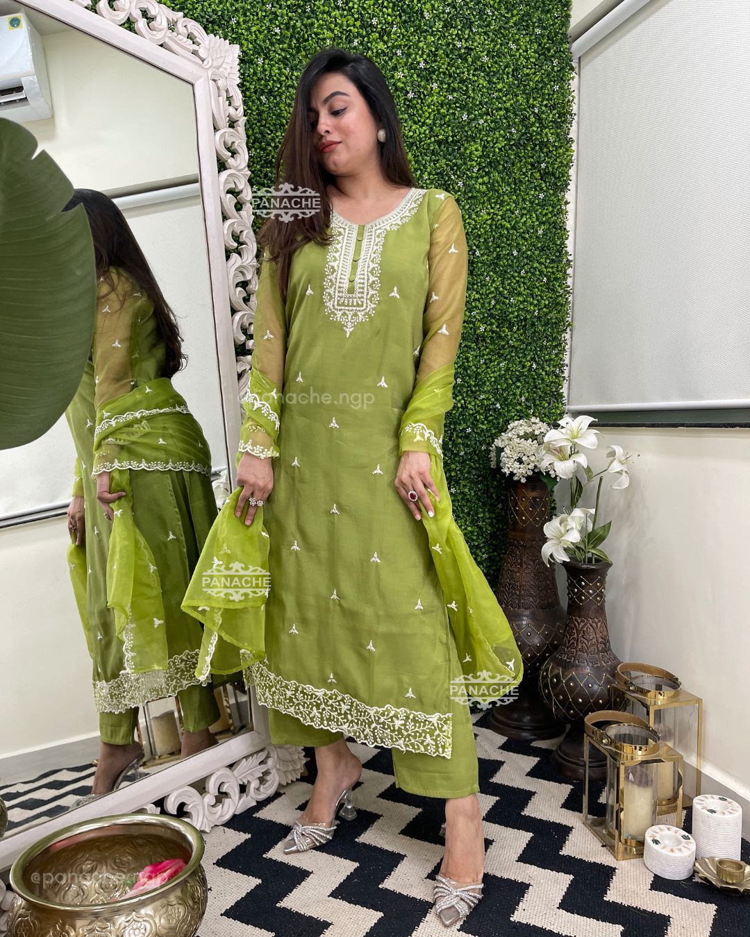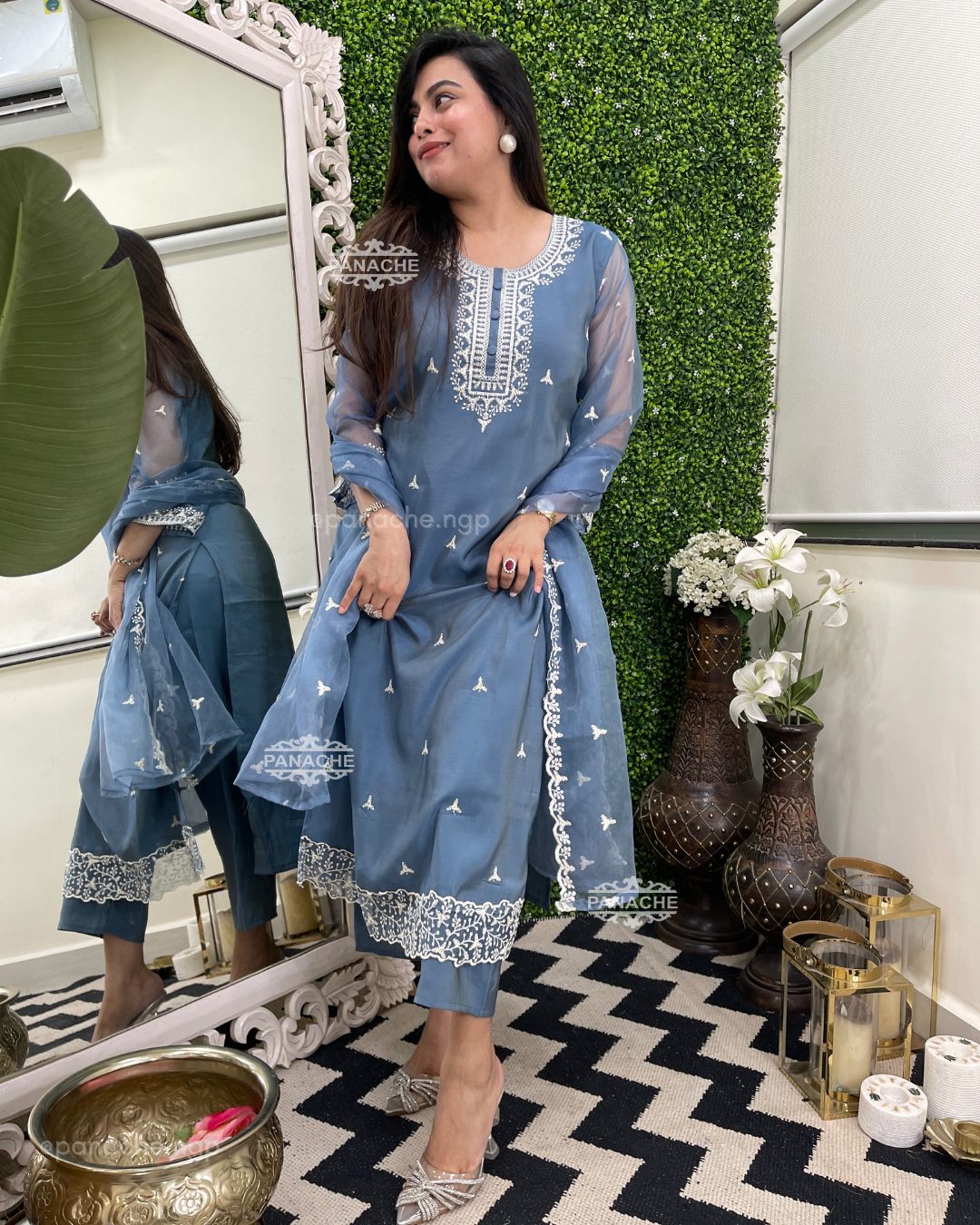 🟣 Wear purpose, sequin highlights with white embroidery all over kurta dupatta and buttis
