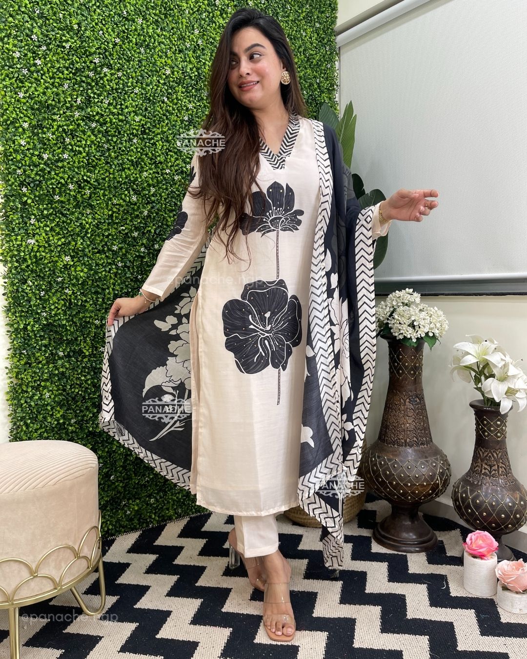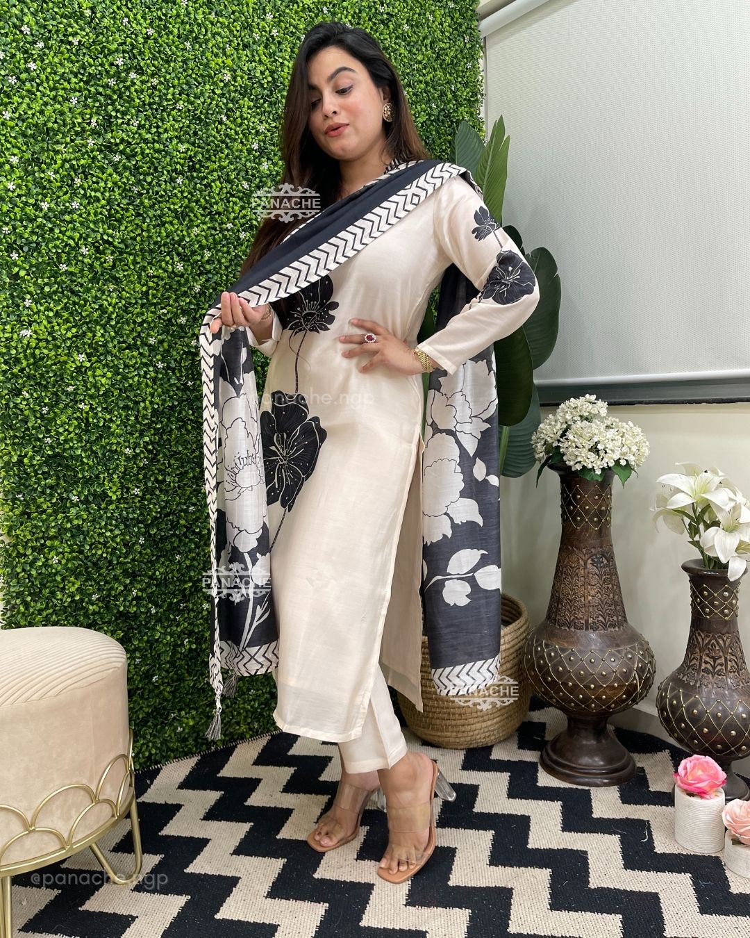 🟣 Karachi look in monochrome with the most beautiful and soft fabric that’s makes it more wearable