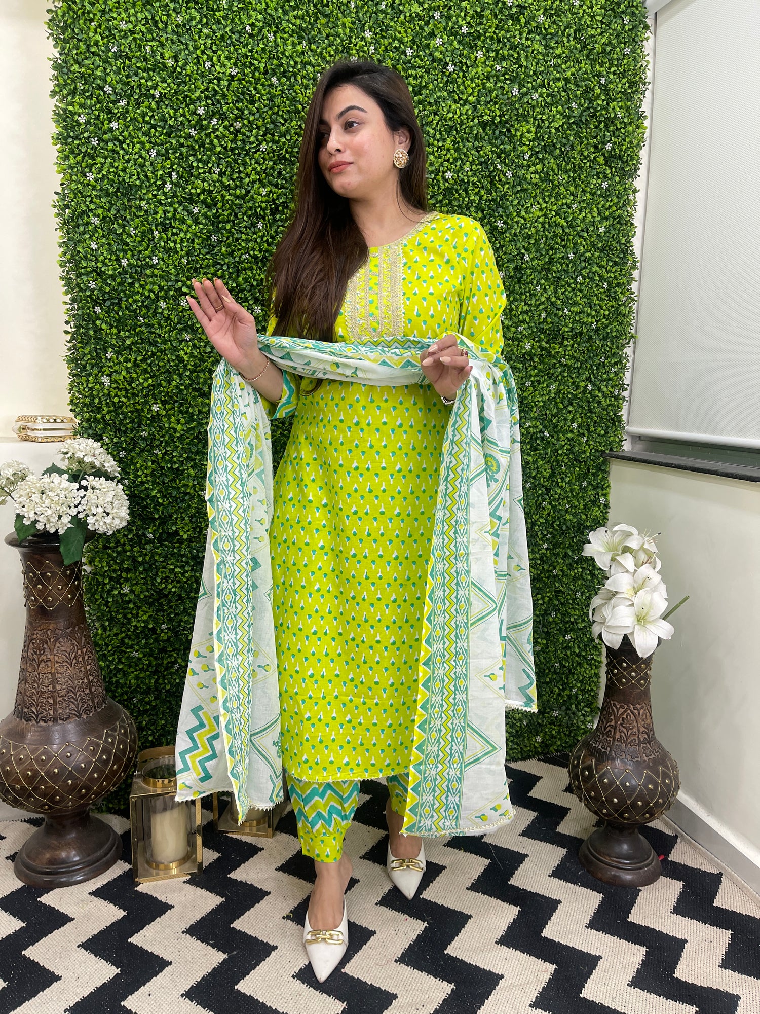 🛍 Print in print kurta Afghani pants dupatta set