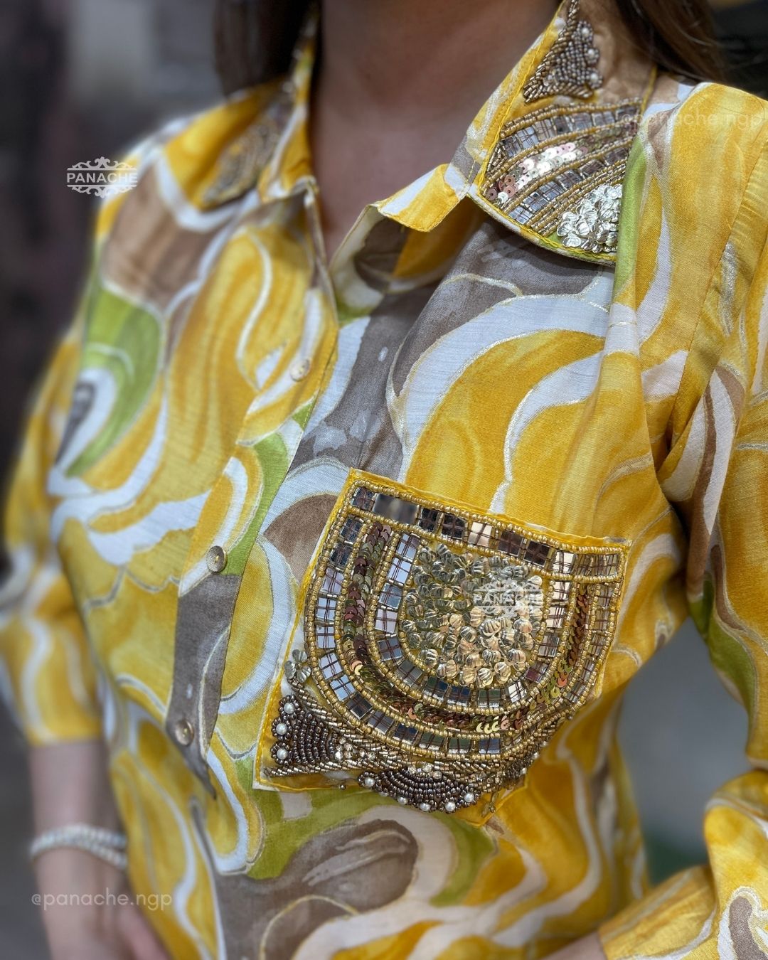 🟣 Modern hand embroidery on kurta collar and pocket