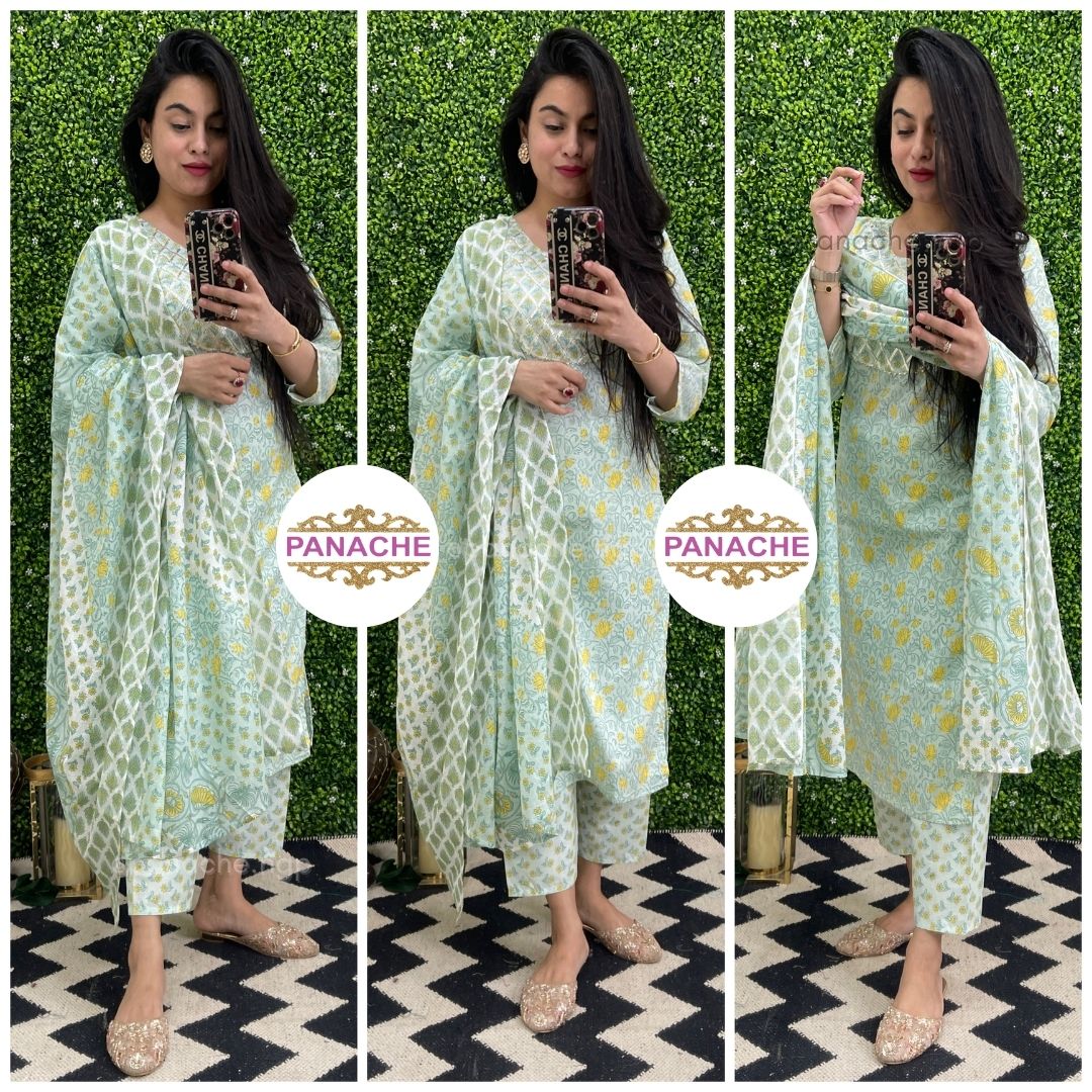 🟣 Details - Pure cotton daily wear set with Gota on yolk on kurta