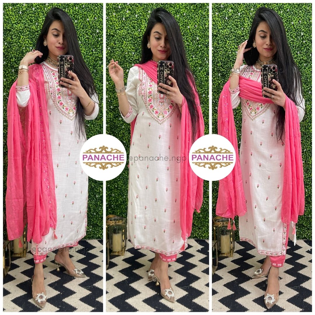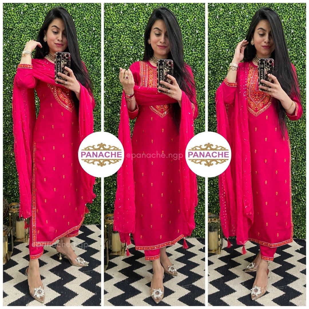 🟣 Details - Multicolored embroidery on kurta , daman of kurta and pants