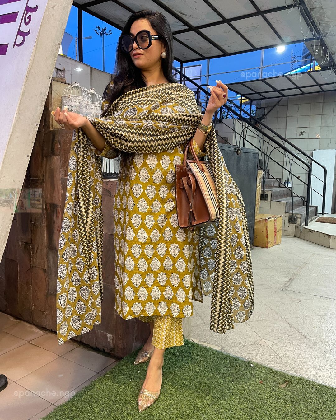 🟣 A Semiformal budget wear suit set for daily wear in print on print