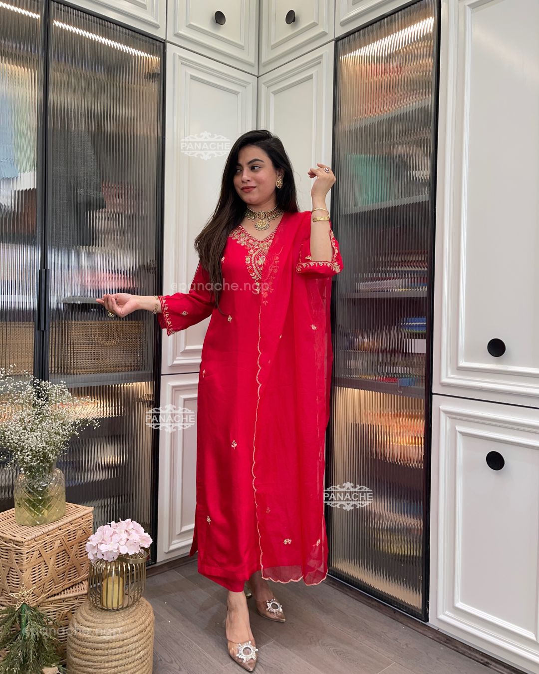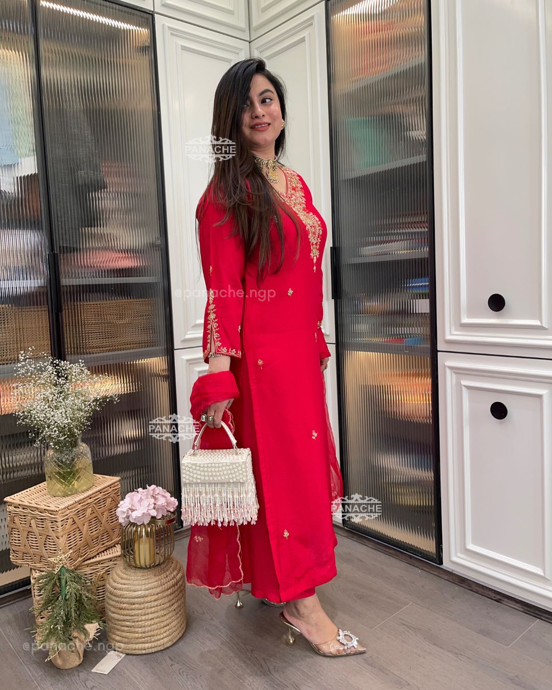 🟣 Zardoz and pure handwork neckline and heavy sleeves with scalloped dupatta and pretty contrast buttas