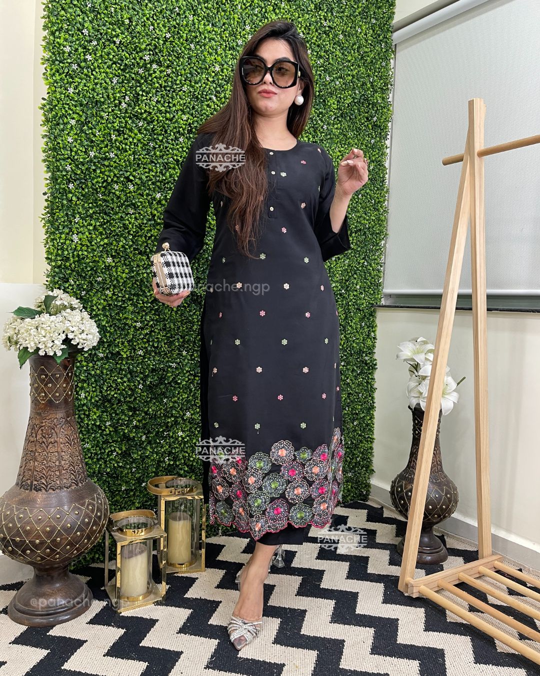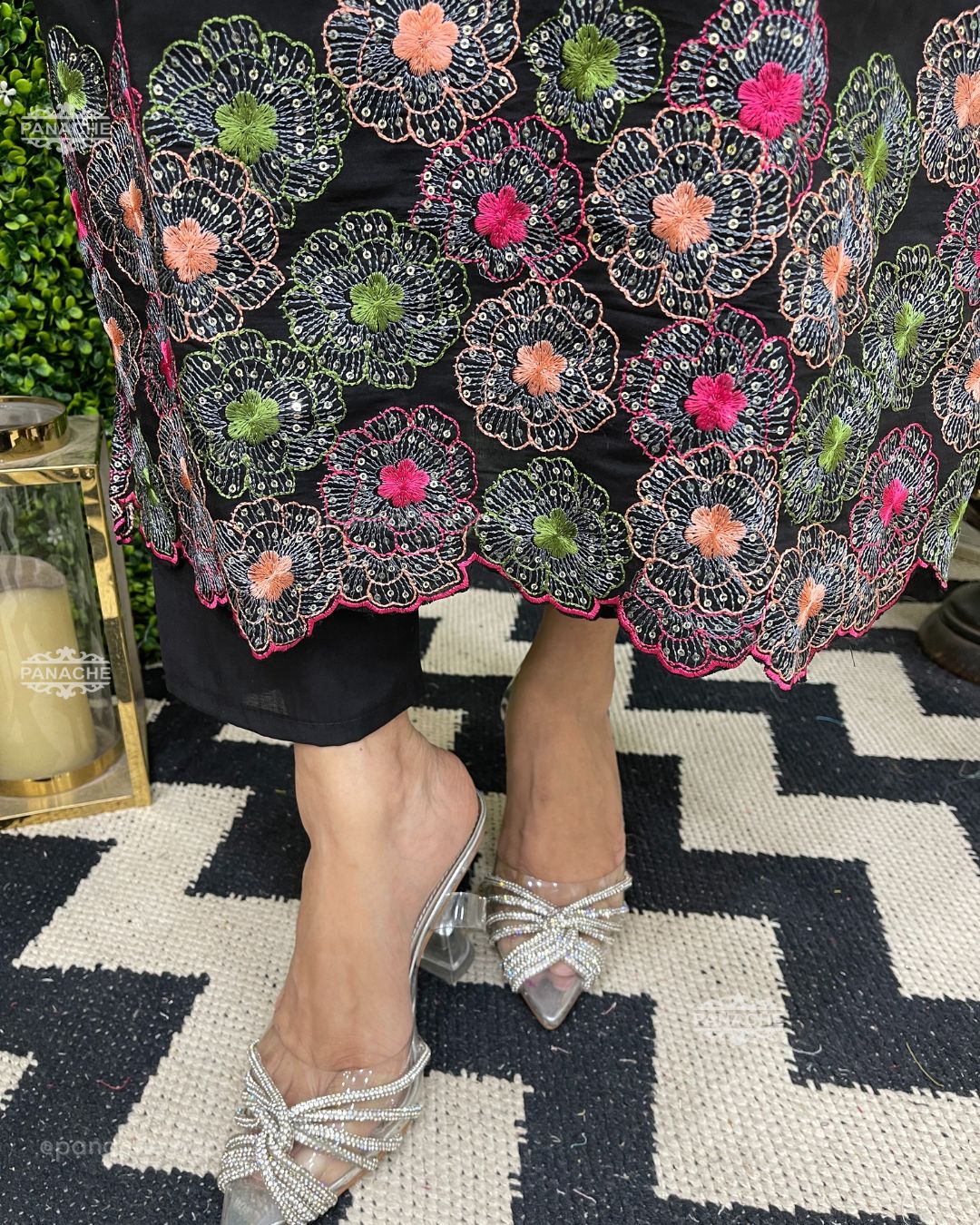 🟣 Floral butting all over kurta and floral 3D embroidery on kurta daman with well fitted pants